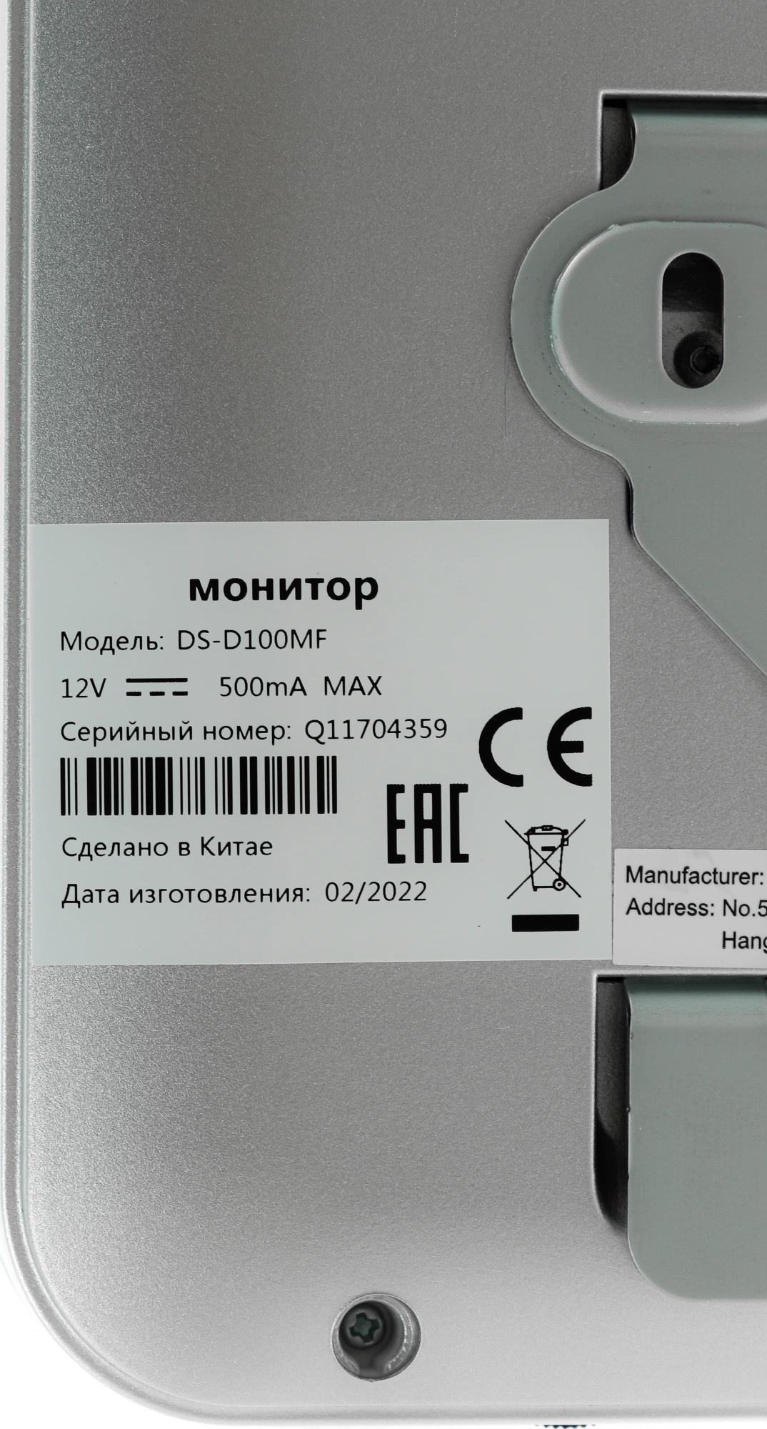 Видеодомофон HiWatch DS-D100MF белый