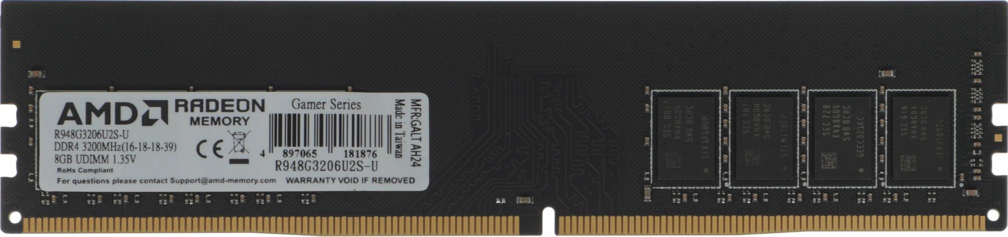 Память DDR4 8Gb 3200MHz AMD R948G3206U2S-U Radeon R9 Gamer Series RTL Gaming PC4-25600 CL16 DIMM 288-pin 1.35В Ret