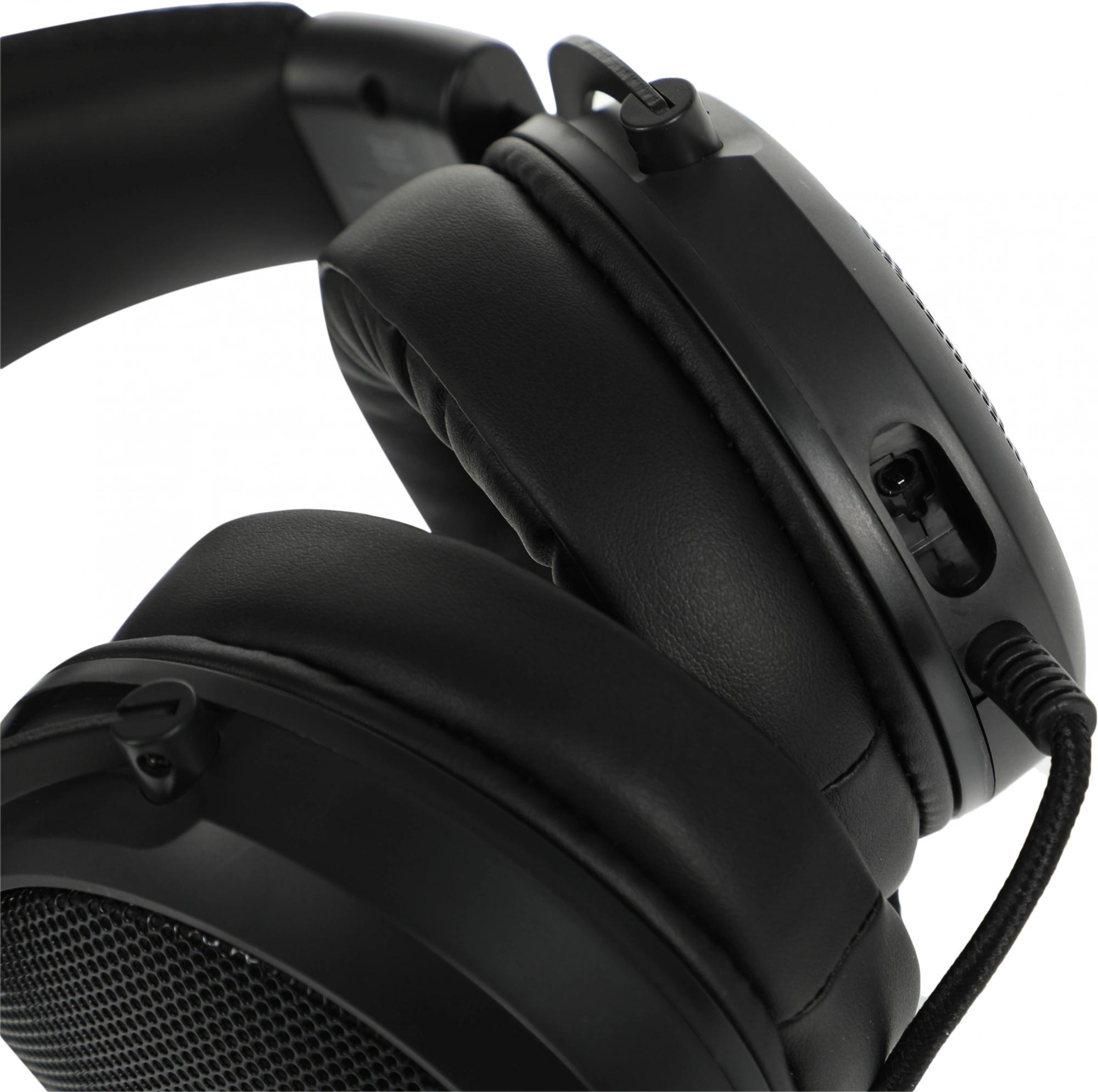 Игровая гарнитура с поддержкой виртуального звука 7.1. Съемный микрофон. Вкл/выкл микрофона, регулировка громкости, вкл/выкл подсветки - на на кабеле. Удобное крепление наушников обеспечивает поворот чашек для большего комфорта. Мягкие амушюры с хорошей звукоизоляцией. Длинный провод.