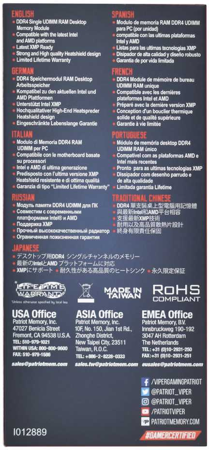 Память DDR4 16Gb 3200MHz Patriot PVE2416G320C8 Viper Elite II RTL Gaming PC4-25600 CL18 DIMM 288-pin 1.35В с радиатором Ret