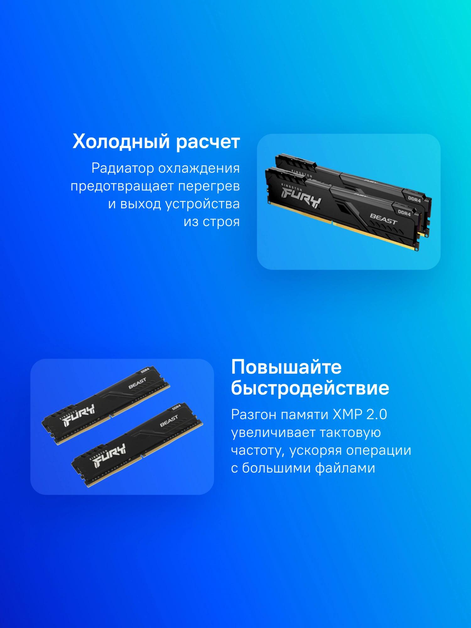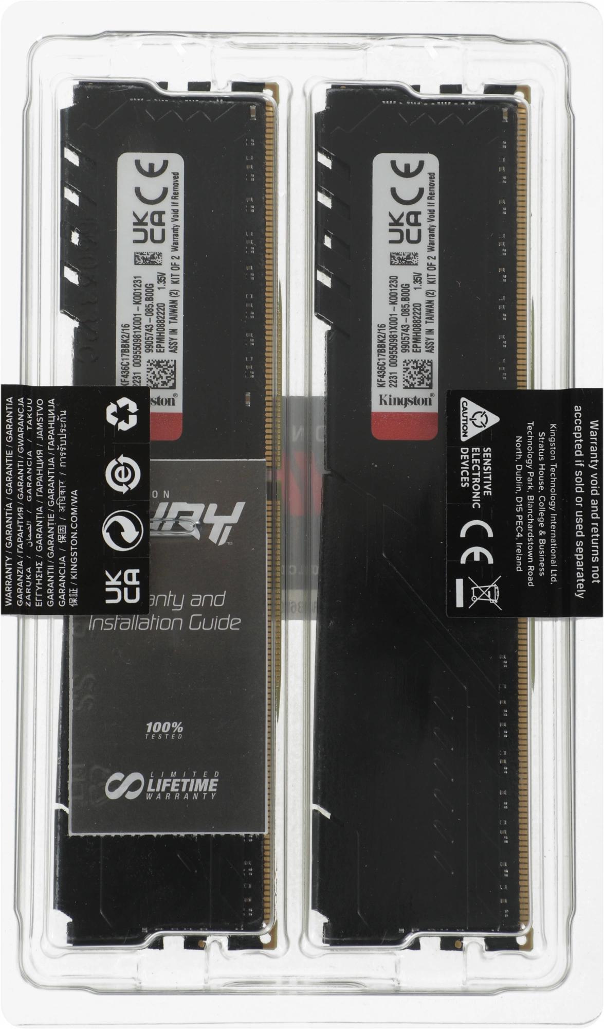 Память DDR4 2x8Gb 3600MHz Kingston KF436C17BBK2/16 Fury Beast RTL Gaming PC4-28800 CL17 DIMM 288-pin 1.35В kit single rank с радиатором Ret