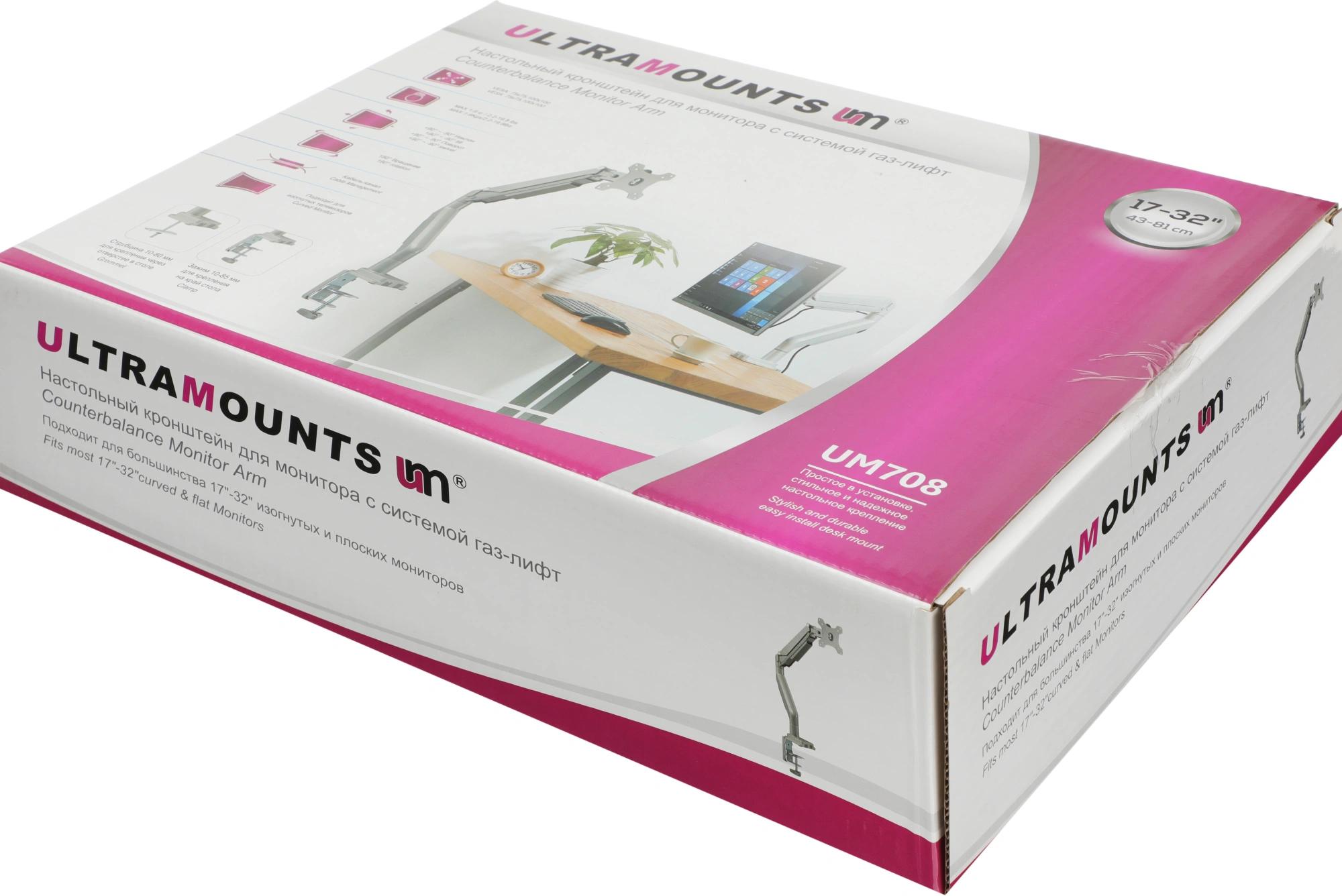 Кронштейн для мониторов Ultramounts UM708 серебристый 17"-32" макс.9кг крепление к столешнице поворот и наклон