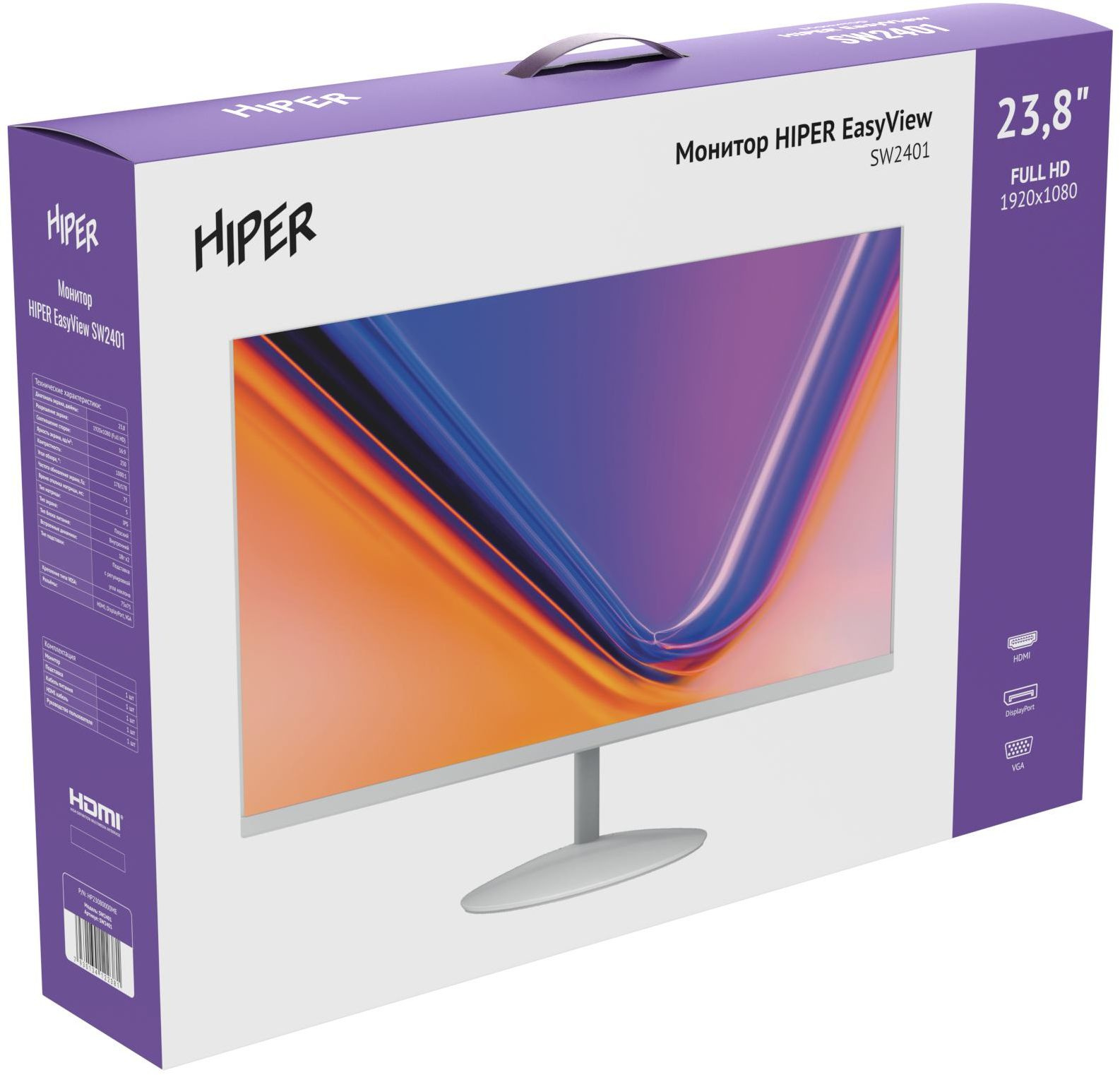 Монитор, подставка, кабель питания, HDMI кабель, руководство пользователя