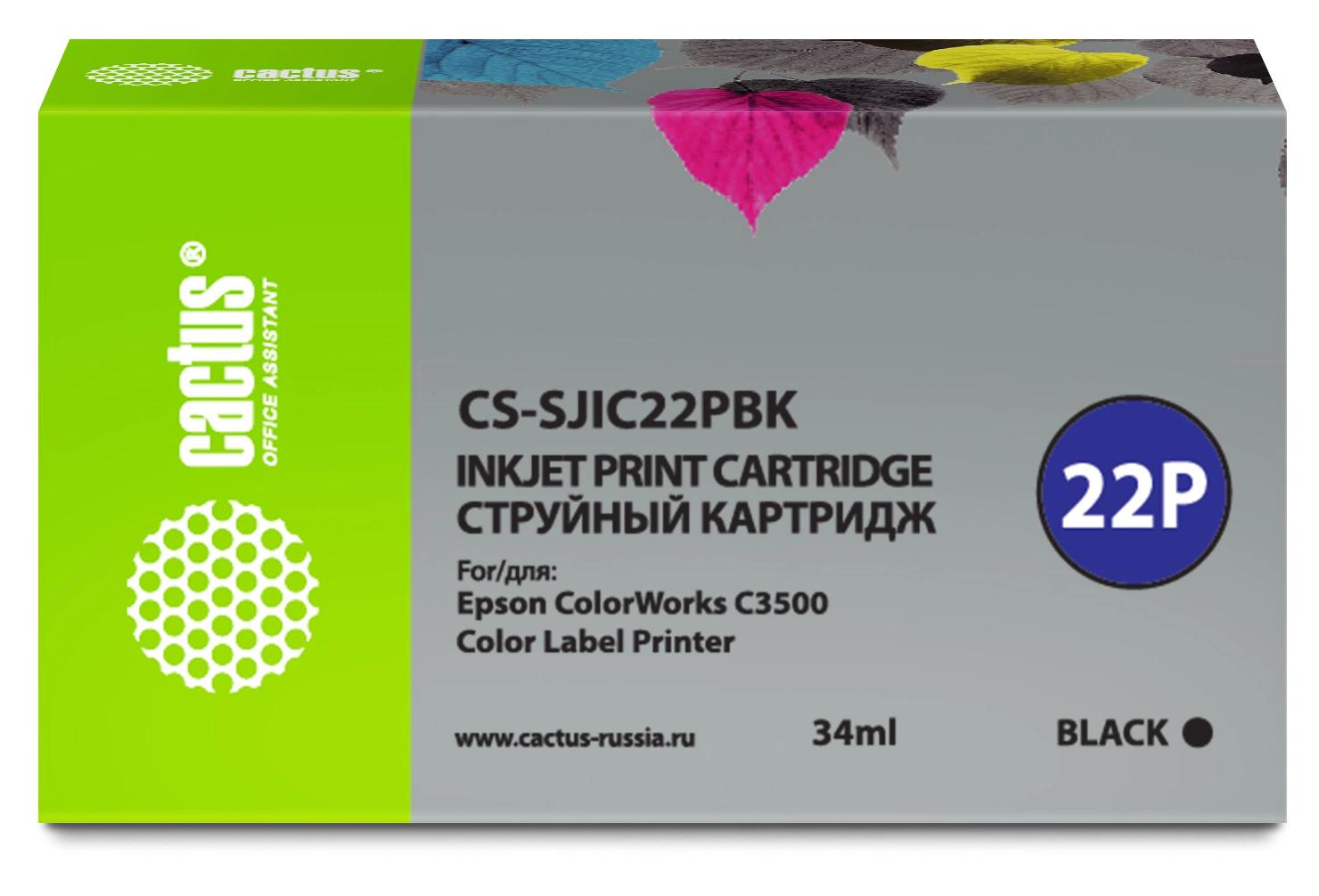 Картридж струйный Cactus CS-SJIC22PBK C33S020601 черный пигментный (34мл) для Epson ColorWorks C3500 с чипом