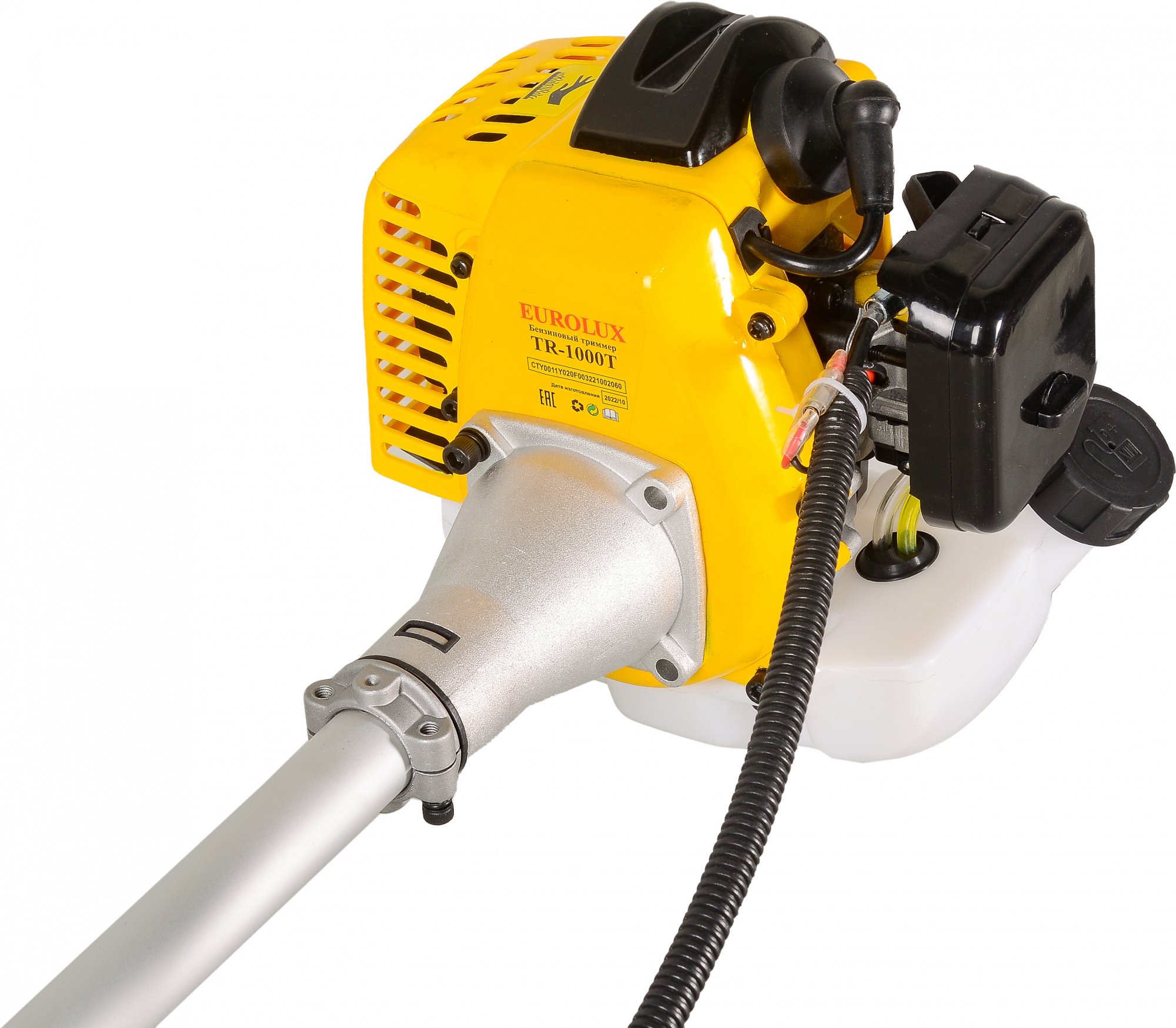 Двигатель в сборе, штанга, защитный кожух, режущий диск, катушка с леской, рукоятки управления (левая и правая), наплечный ремень, комплект ключей, паспорт продукции.