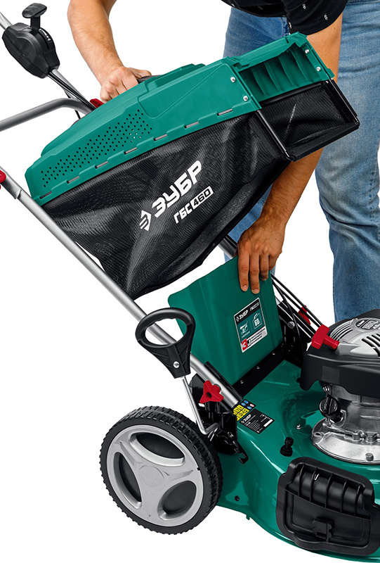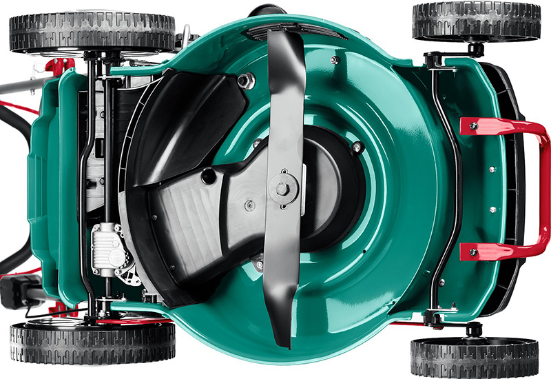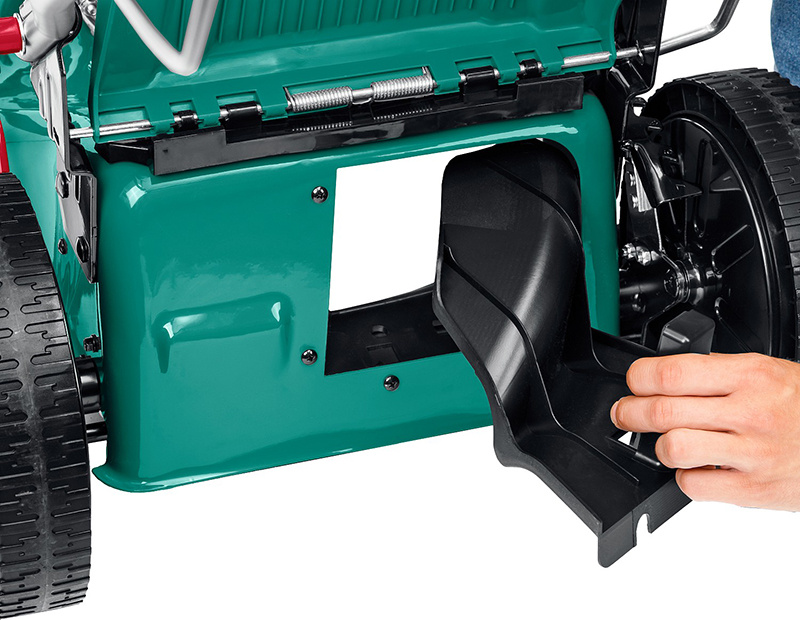 Газонокосилка, рукоятка, травосборник, ключ, зажим - 2 шт., вставка для мульчирования, кожух направляющий, руководство по эксплуатации.