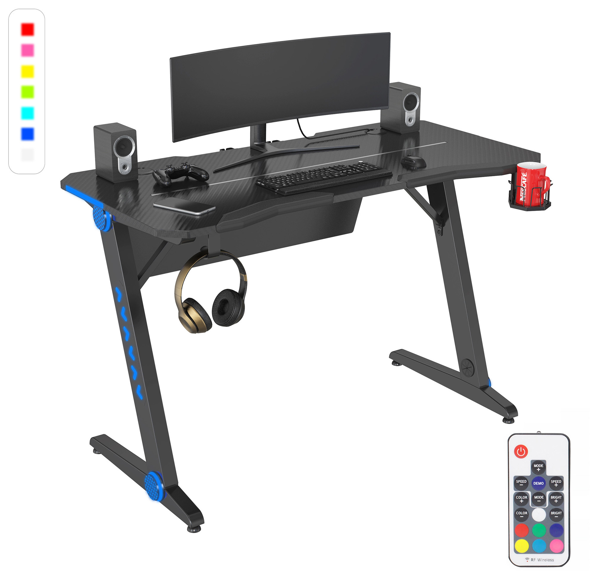 Стол игровой Cactus CS-GTIZ-BK-CARBON-RGB столешница МДФ карбон каркас черный