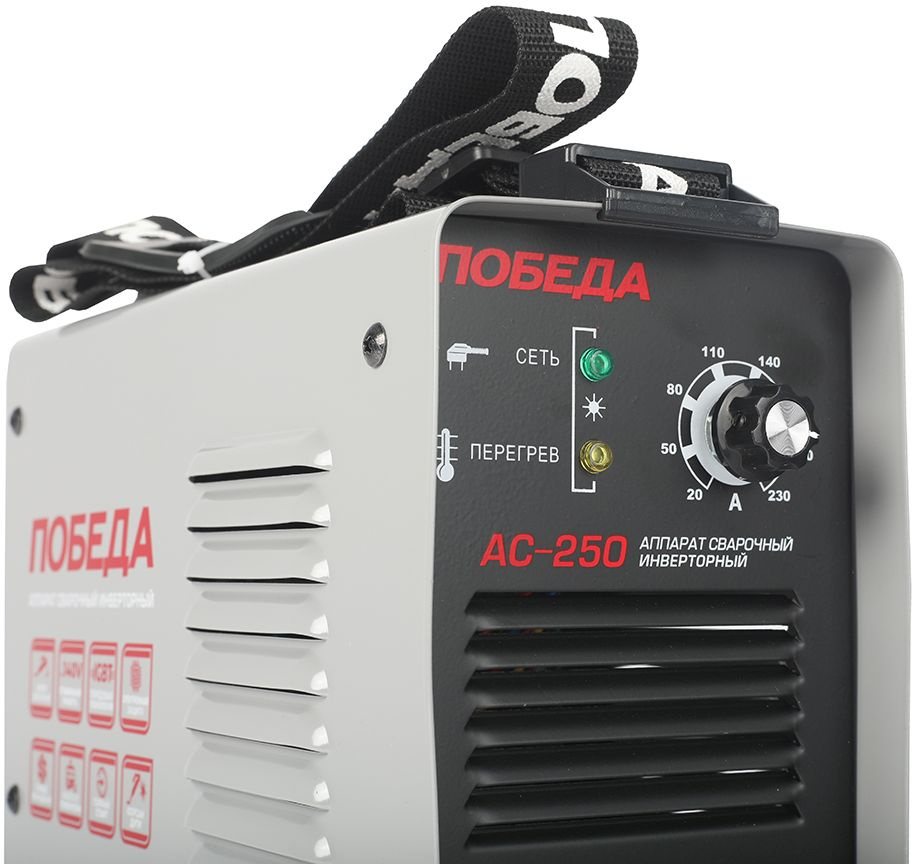 Инверторный сварочный аппарат АС 250 обладает высоким качеством сварного соединения и способен варить электродами диаметром до 5.0 мм. Эффективная система воздушного охлаждения и встроенная функция термозащиты с индикацией перегрева дают гарантию надежности и долговечности работы инвертора.