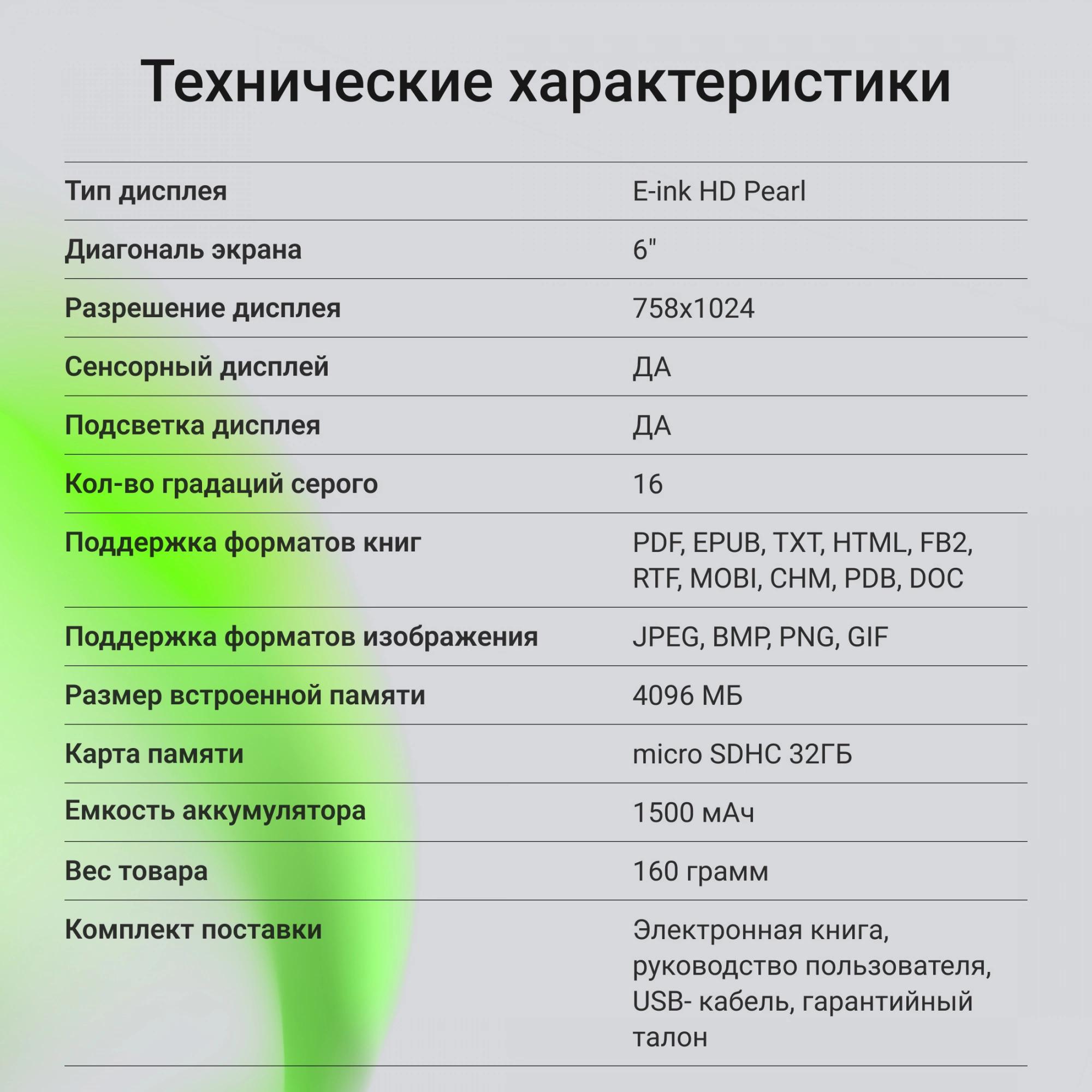 Электронная книга, руководство пользователя, USB- кабель, гарантийный талон