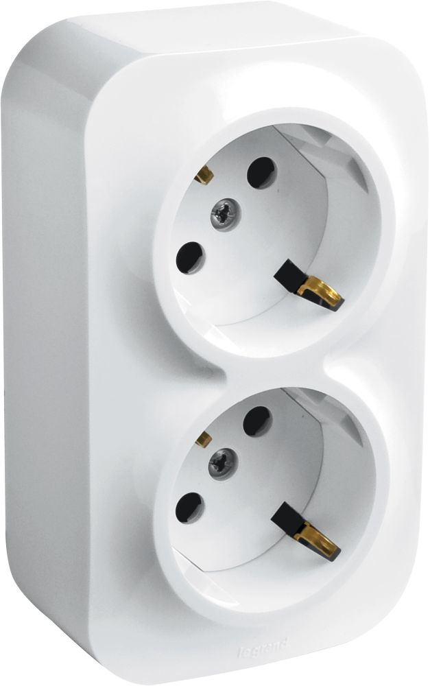 Блок силов. Legrand Quteo 782237 2розет. двойн. откр. зазем. штор. IP20 белый (упак.:1шт)