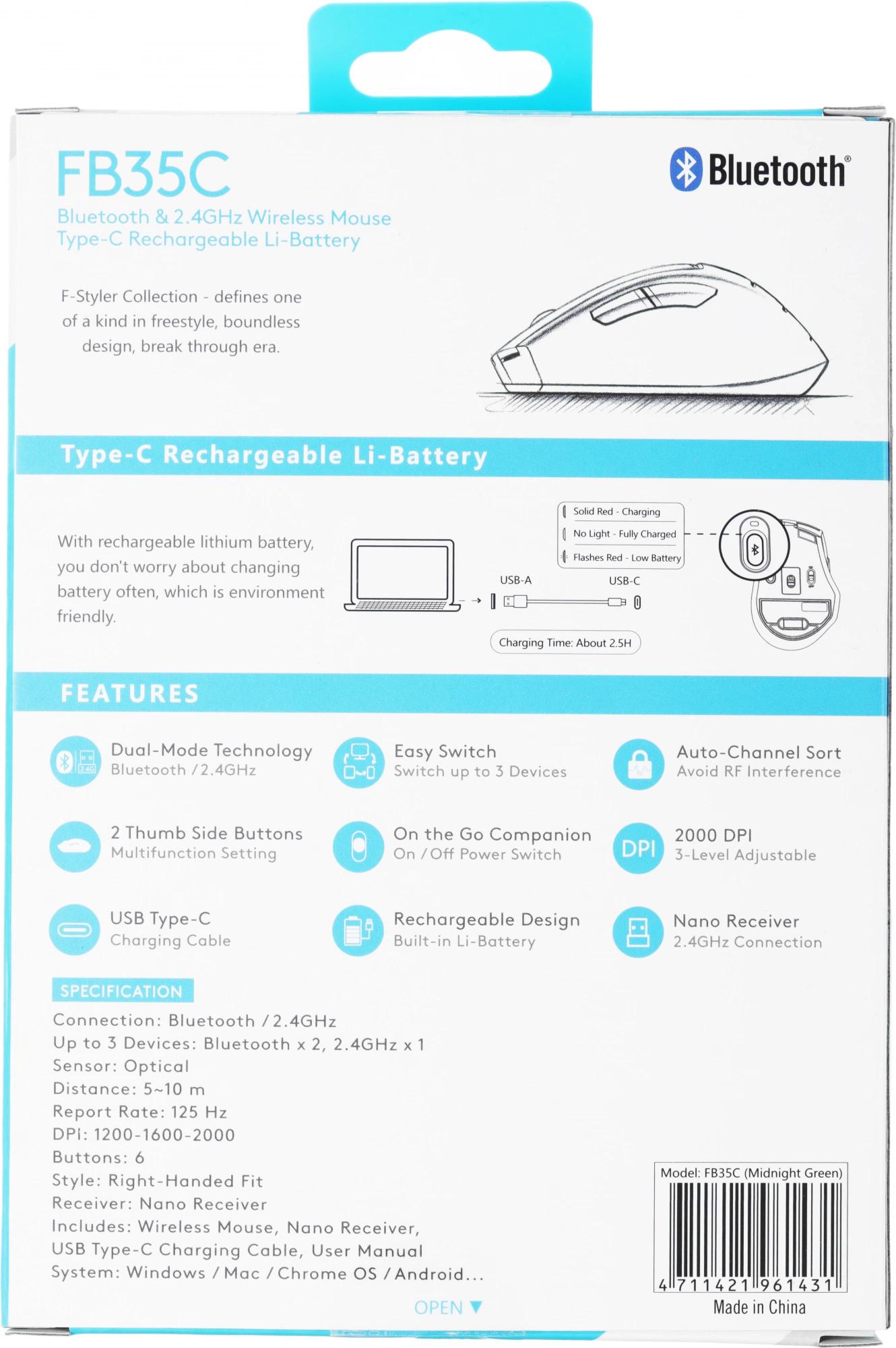 Мышь A4Tech Fstyler FB35C зеленый/черный оптическая 2000dpi беспров. BT/Radio USB 6but (FB35C MIDNIGHT GREEN)