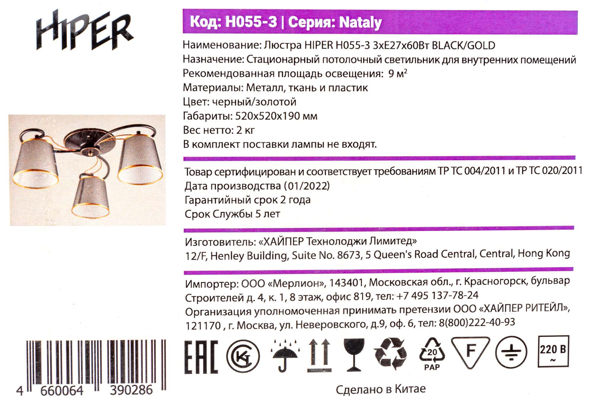 Люстра Hiper Nataly H055-3 потолоч. черный/золотистый