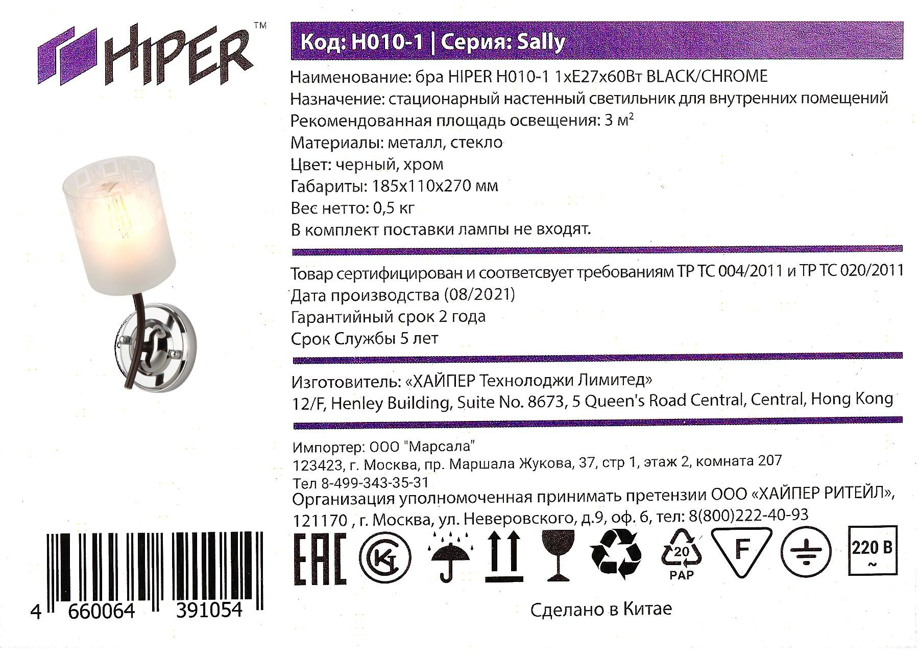 Светильник Hiper Sally H010-1 настен. черный/хром