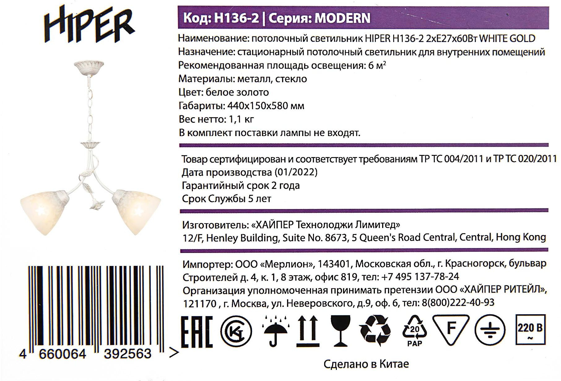 Светильник Hiper Modern H136-2 потолоч. белый