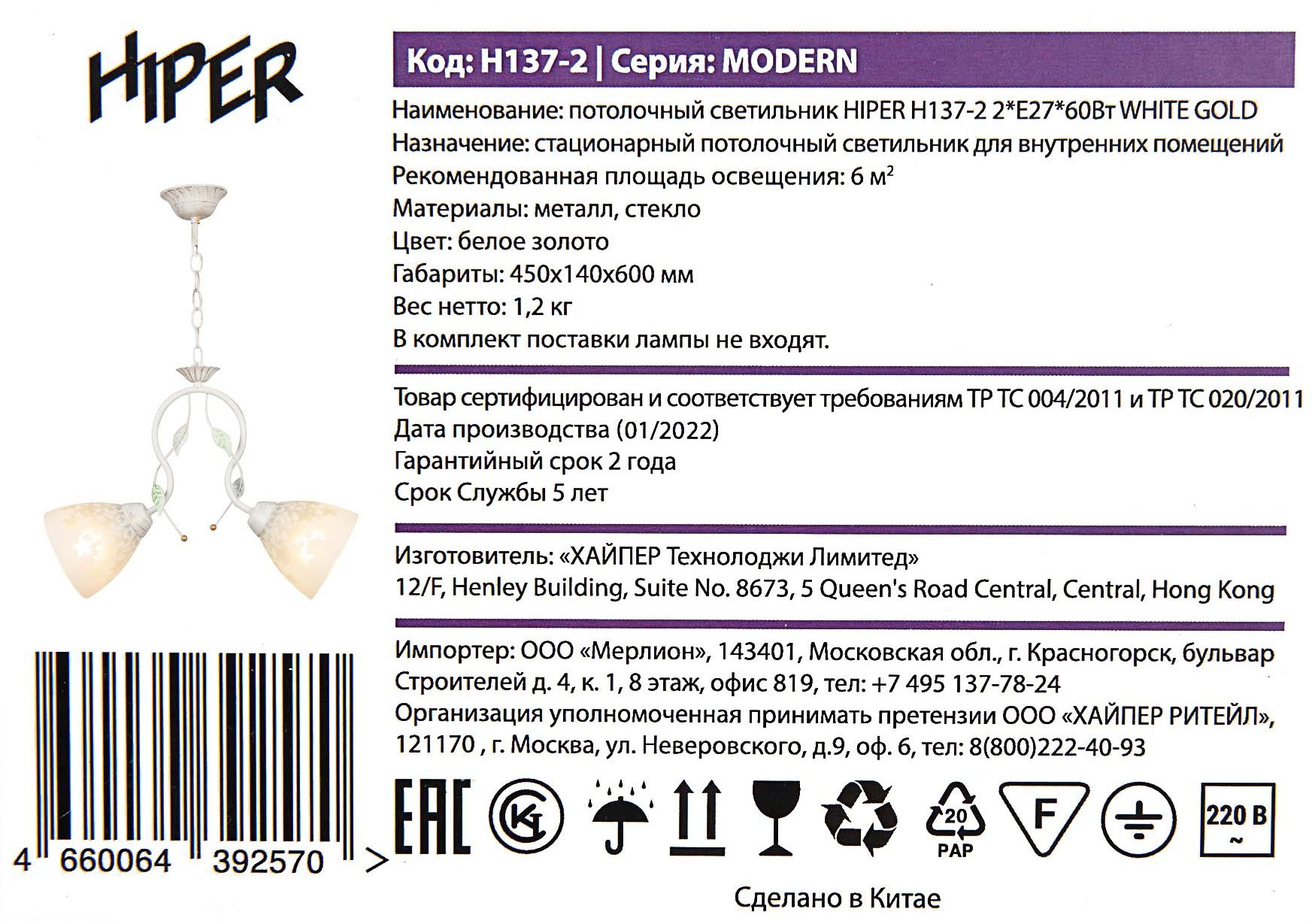Светильник Hiper Modern H137-2 потолоч. белый