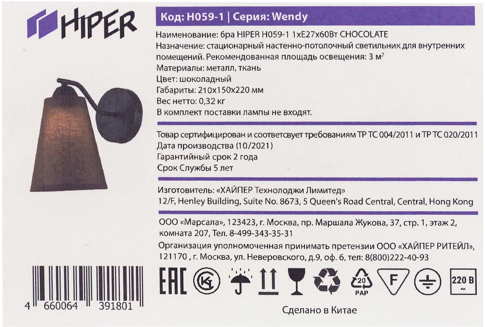 Светильник Hiper Wendy H059-1 настен. коричневый
