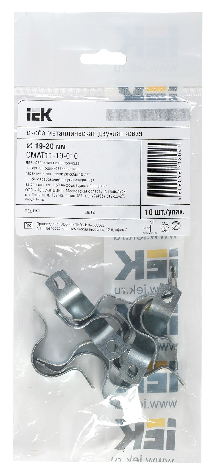 Скоба IEK CMAT11-19-010 двухлапковый 19мм сталь оцинкованная белый (упак.:10шт)