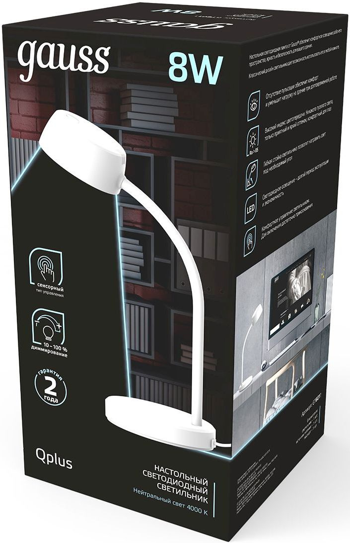Светильник Gauss GTL601 (GT6011) настольный на подставке белый 8Вт