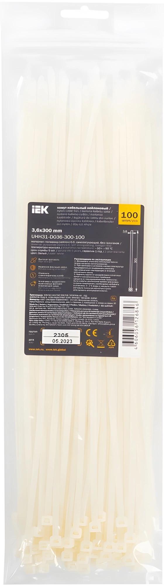 Хомут IEK UHH31-D036-300-100 300x3.6мм (упак:100шт) нейлон белый
