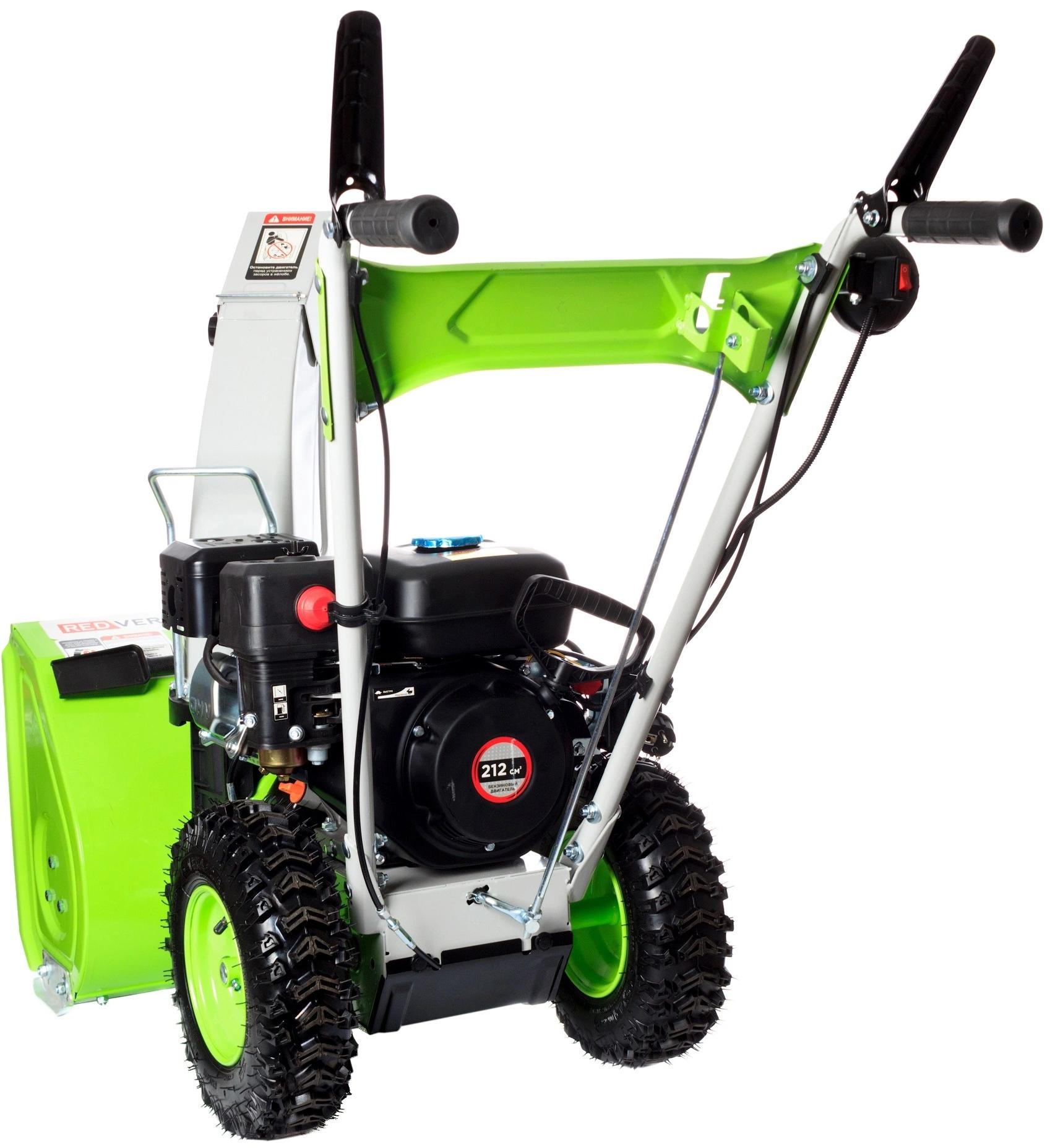 Снегоуборщик RedVerg RD-SB56/7E с электрозапуском, предназначен для очистки от снега площадок, дорожек на дачном участке или вокруг дома, стоянок под автомобили. Машина снабжена 4 скоростями вперед. Позиция 1 самая медленная, позиция 4 – самая быстрая.