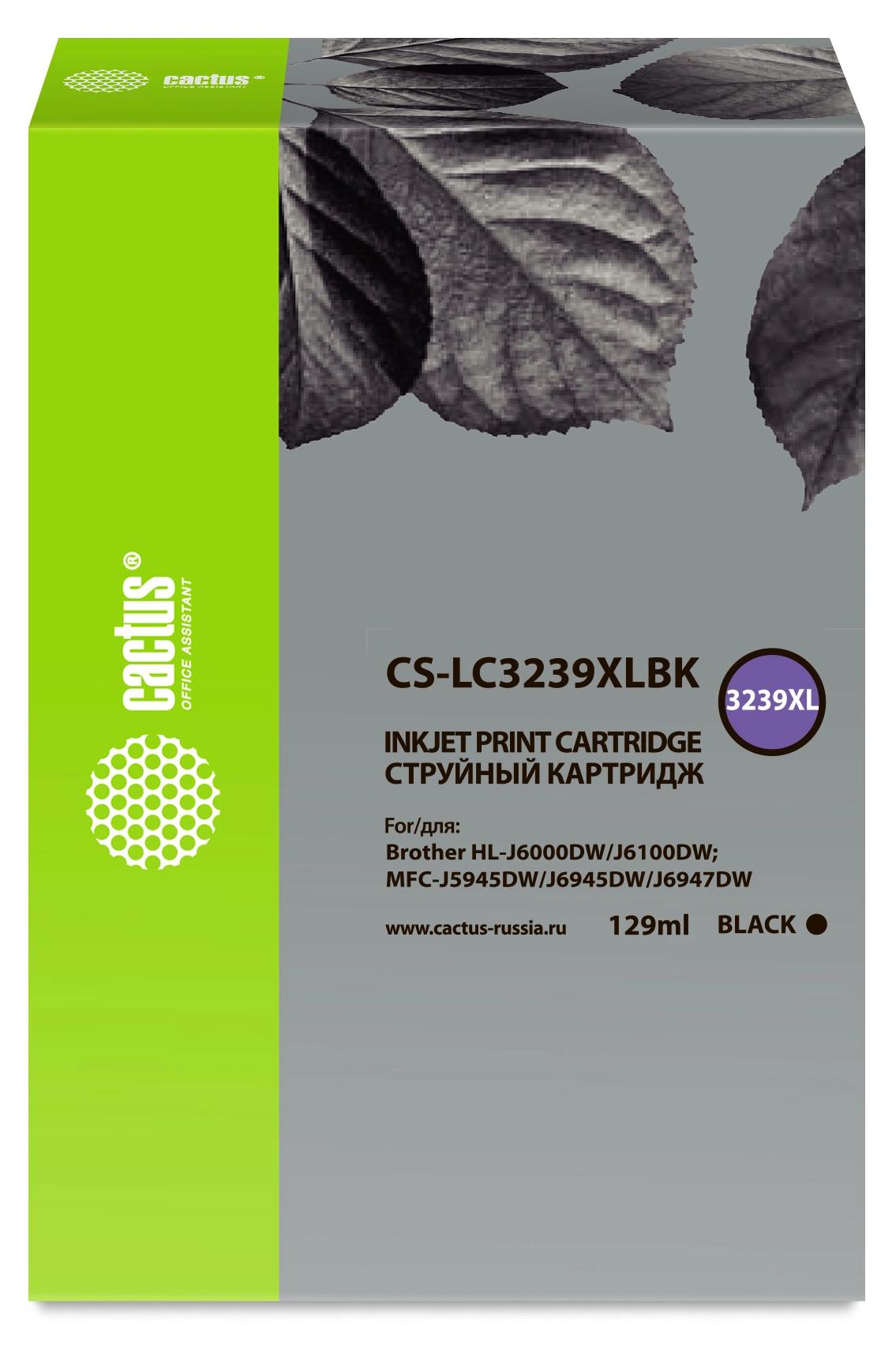 Картридж струйный Cactus CS-LC3239XLBK черный пигментный (129мл) для Brother HL-J6000DW/J6100DW с чипом
