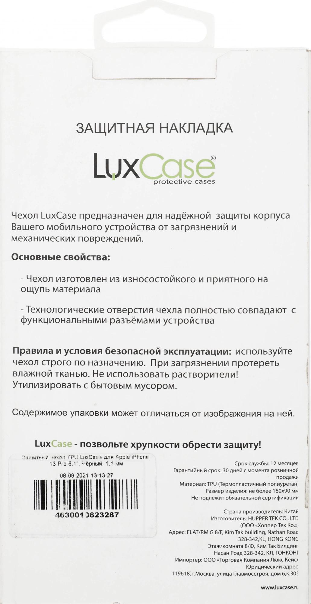 Чехол LuxCase предлагает дополнительную защиту для вашего Apple iPhone 13 Pro. Тонкий и лёгкий чехол удобно лежит в руке и достаточно прочен, чтобы защитить телефон от ударов и случайных царапин.