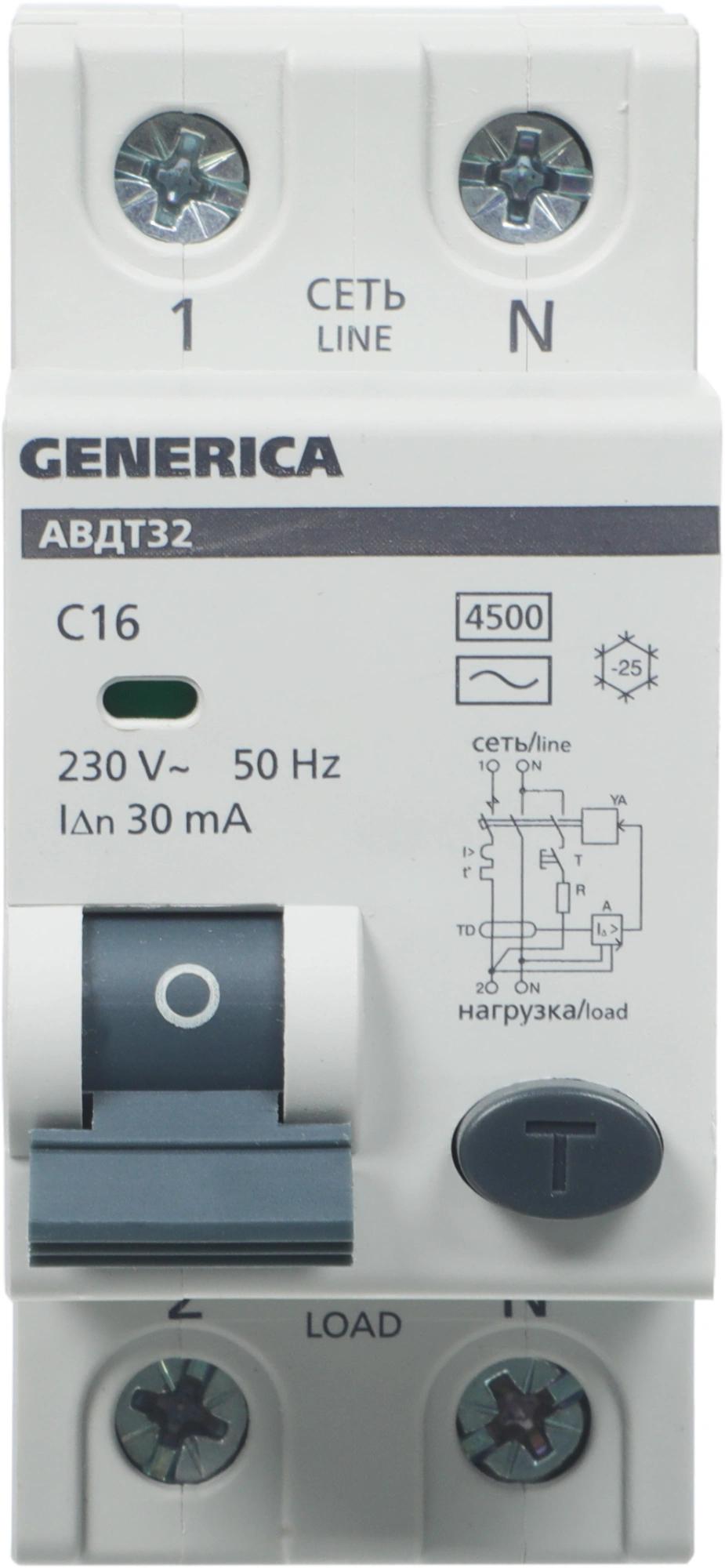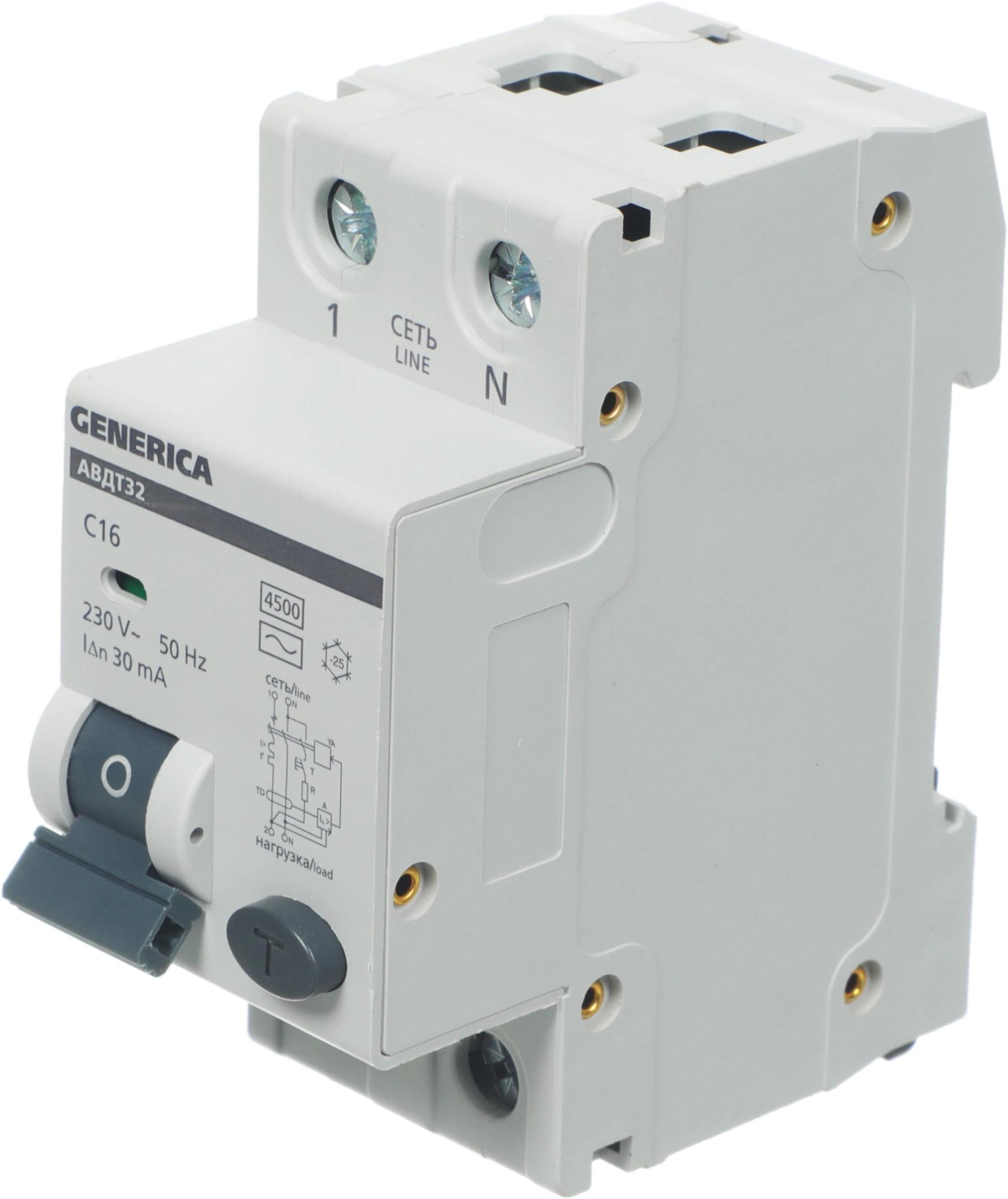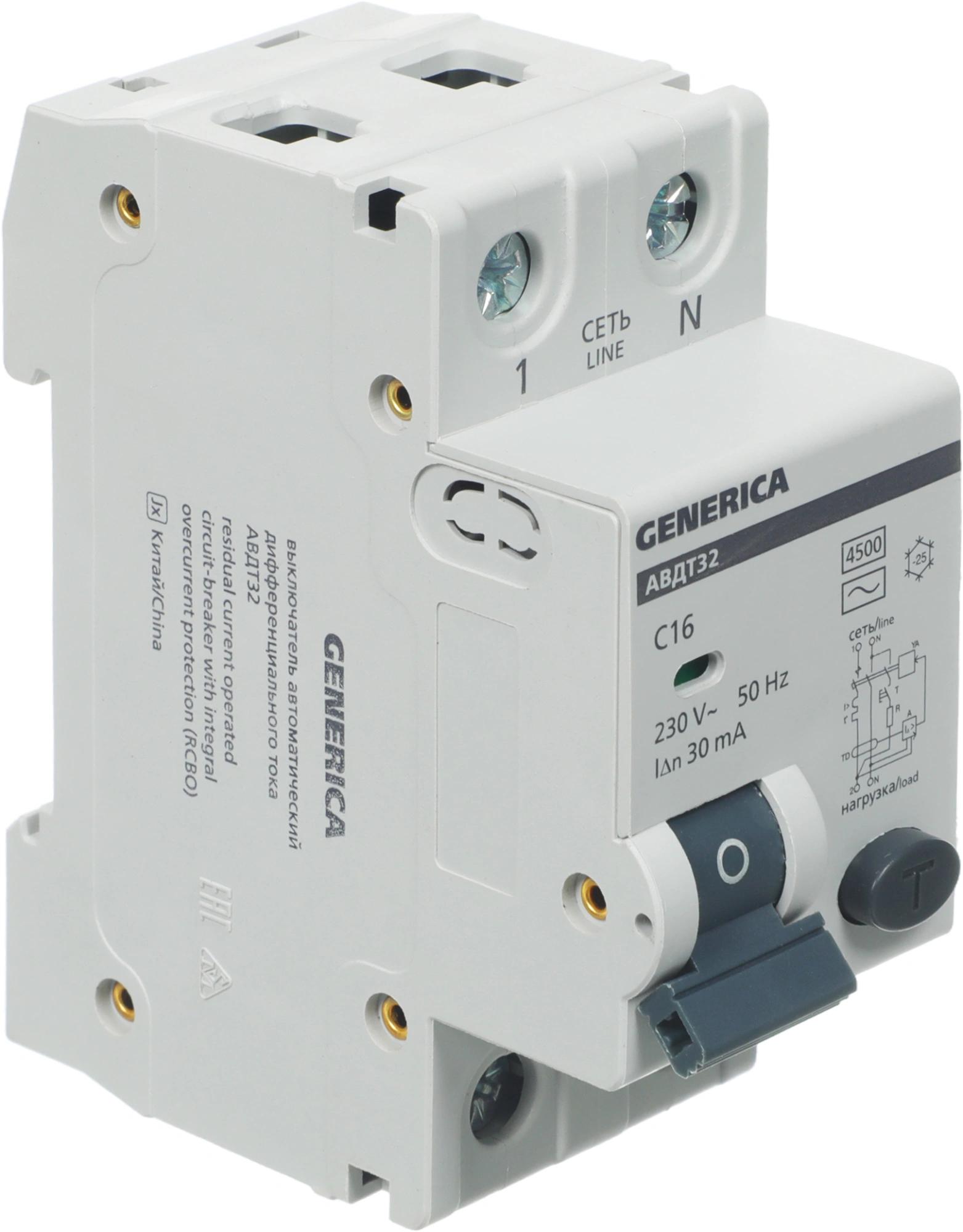 Выключатель автом. дифф. тока IEK MAD25-5-016-C-30 АВДТ 32 Generica 16A тип C 6kA 30мА AC 2П 230В 2мод серый (упак.:1шт)