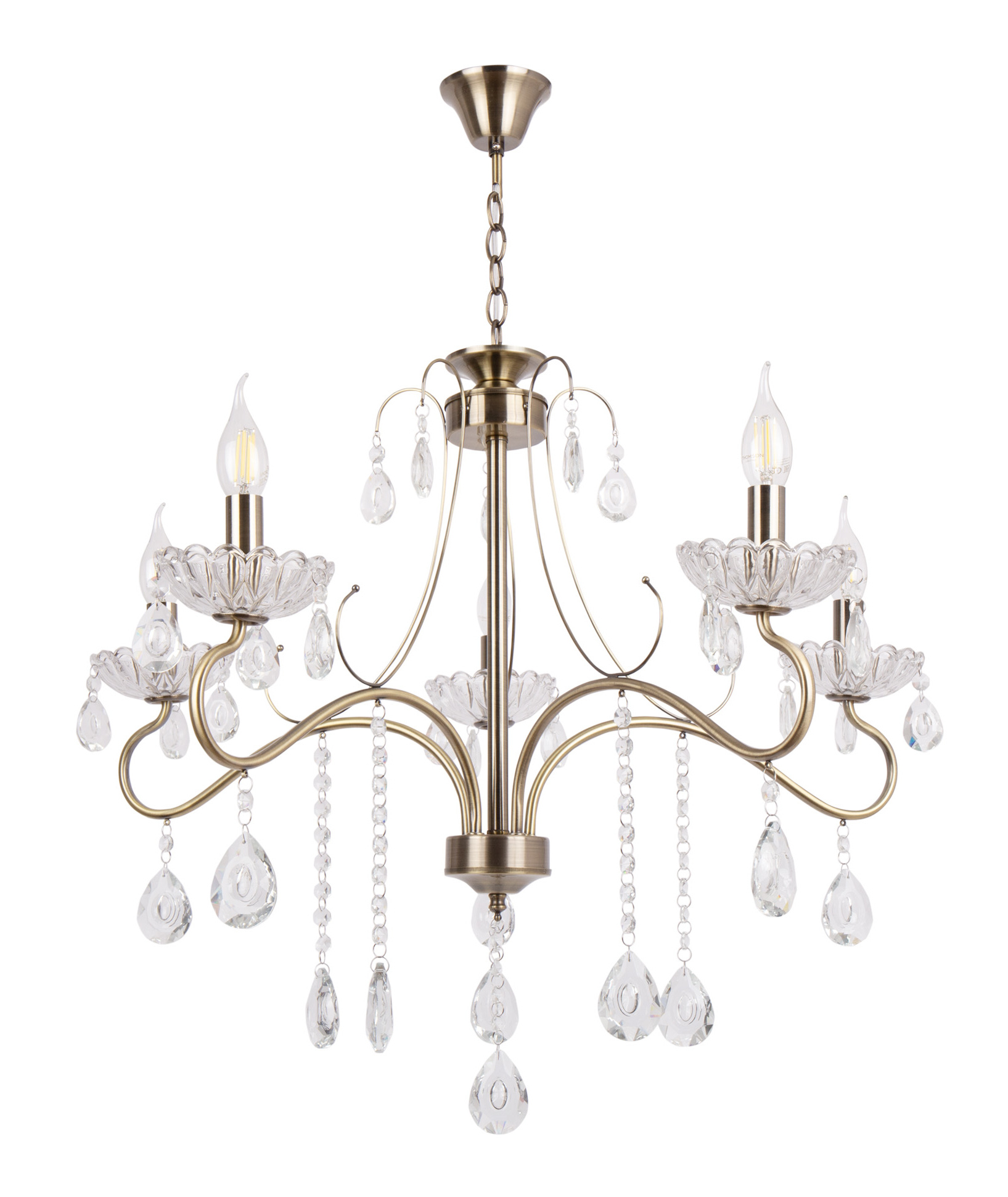 Люстра Hiper H220-5 потолоч. бронза ант./прозрач.