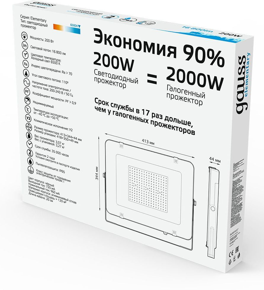 Прожектор уличный Gauss Elementary светодиодный 200Втчерный (691511200)