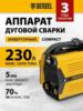 Аппарат инверторный дуговой сварки Denzel DS-230 Compact - самая мощная модель в своей серии. Весит всего 4, 2 кг. но при этом может варить электродом до 5 мм. металл толщиной до 14 мм. Способен стабильно работать в диапазоне сетевого напряжения 150-250 В.