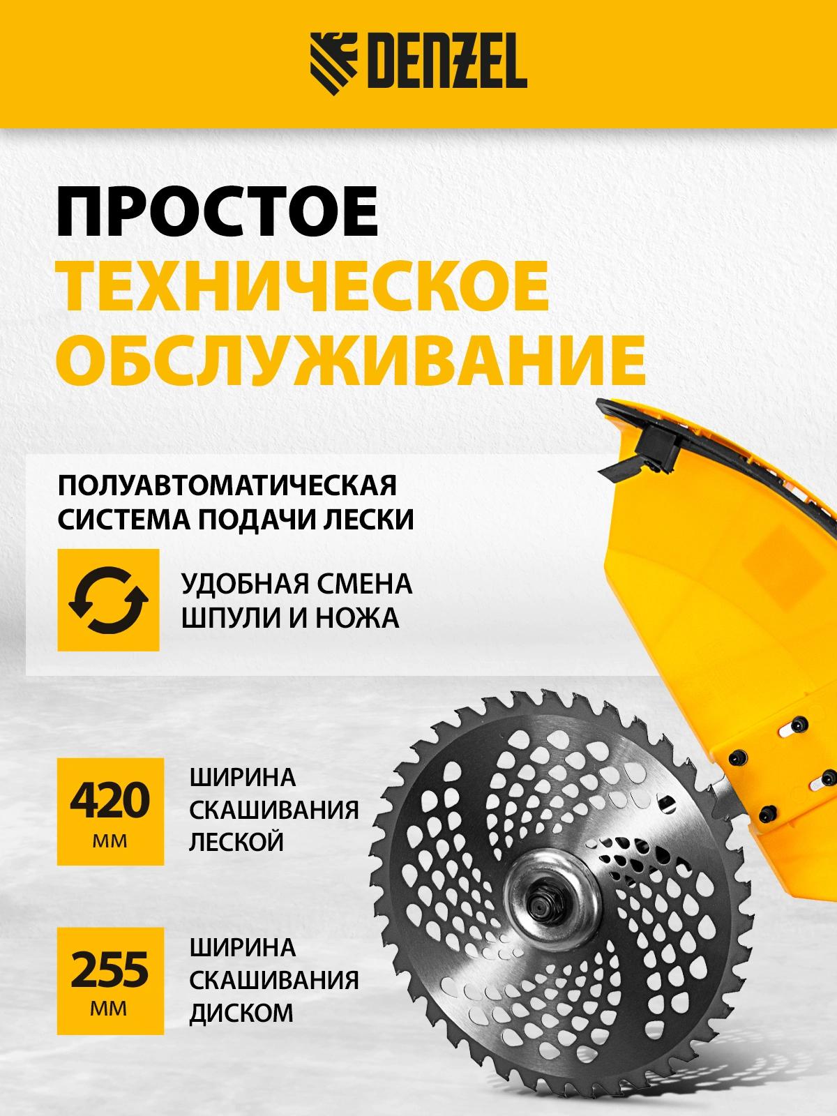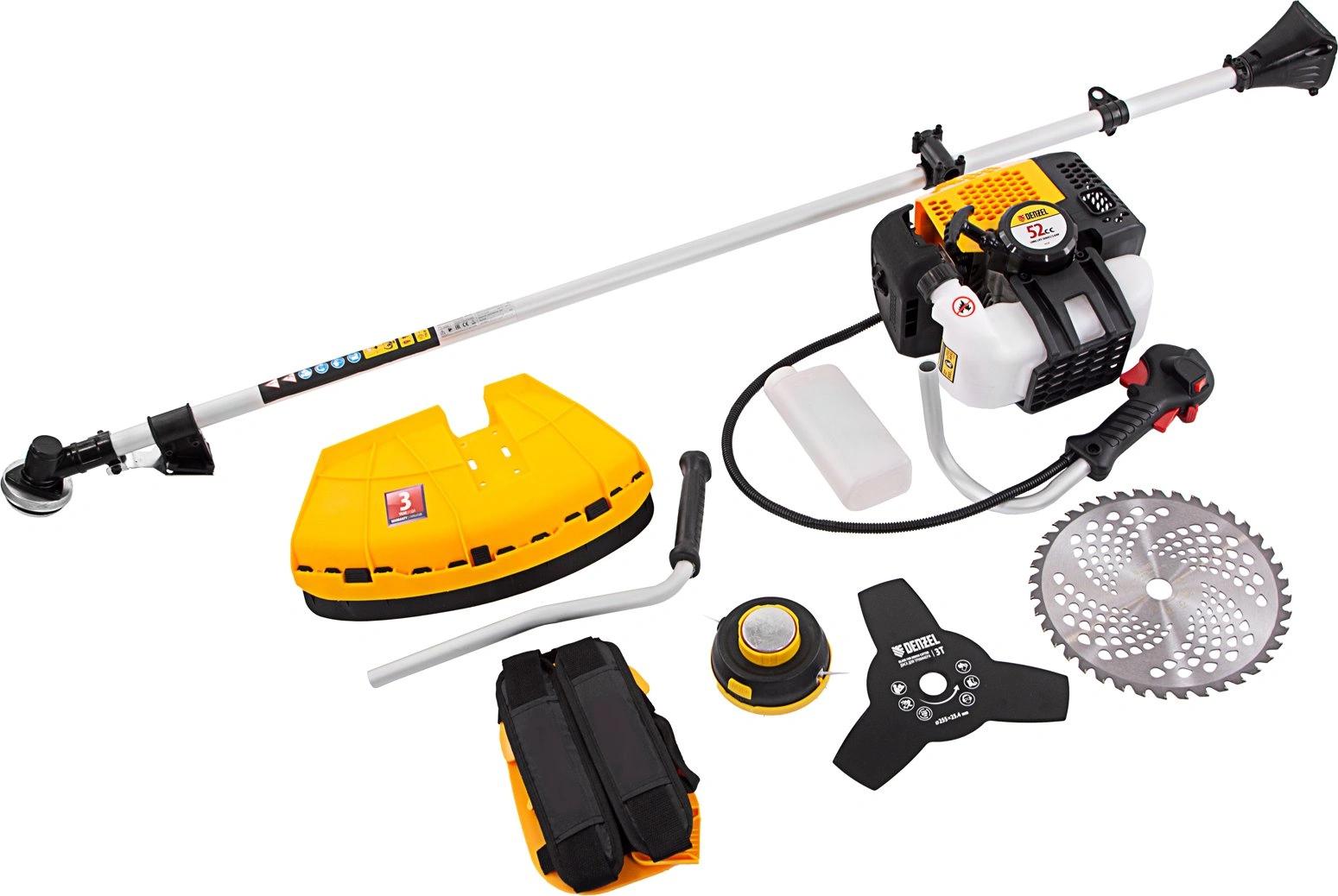 Триммер бензиновый, катушка, нож трехлопастной 3Т, пильный диск 40Т, двухплечевая подвесная система с защитой бедра, дозатор для приготовления смеси, набор крепежа, набор инструментов, руководство по эксплуатации с гарантийным талоном.