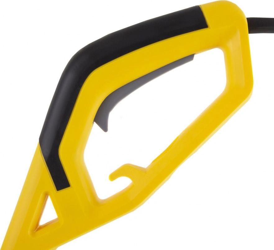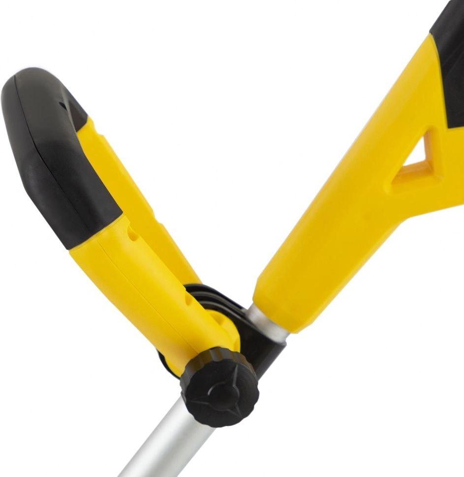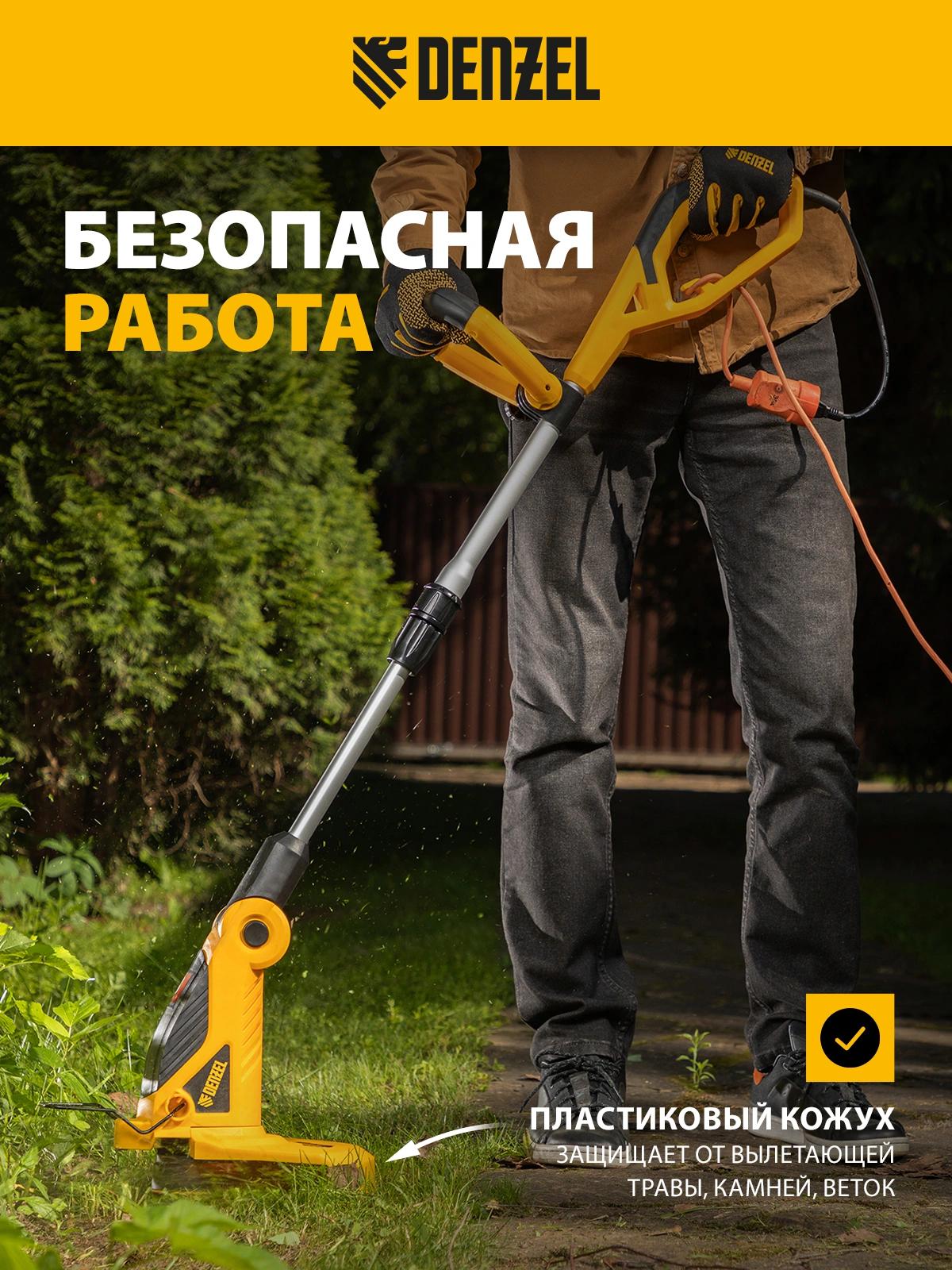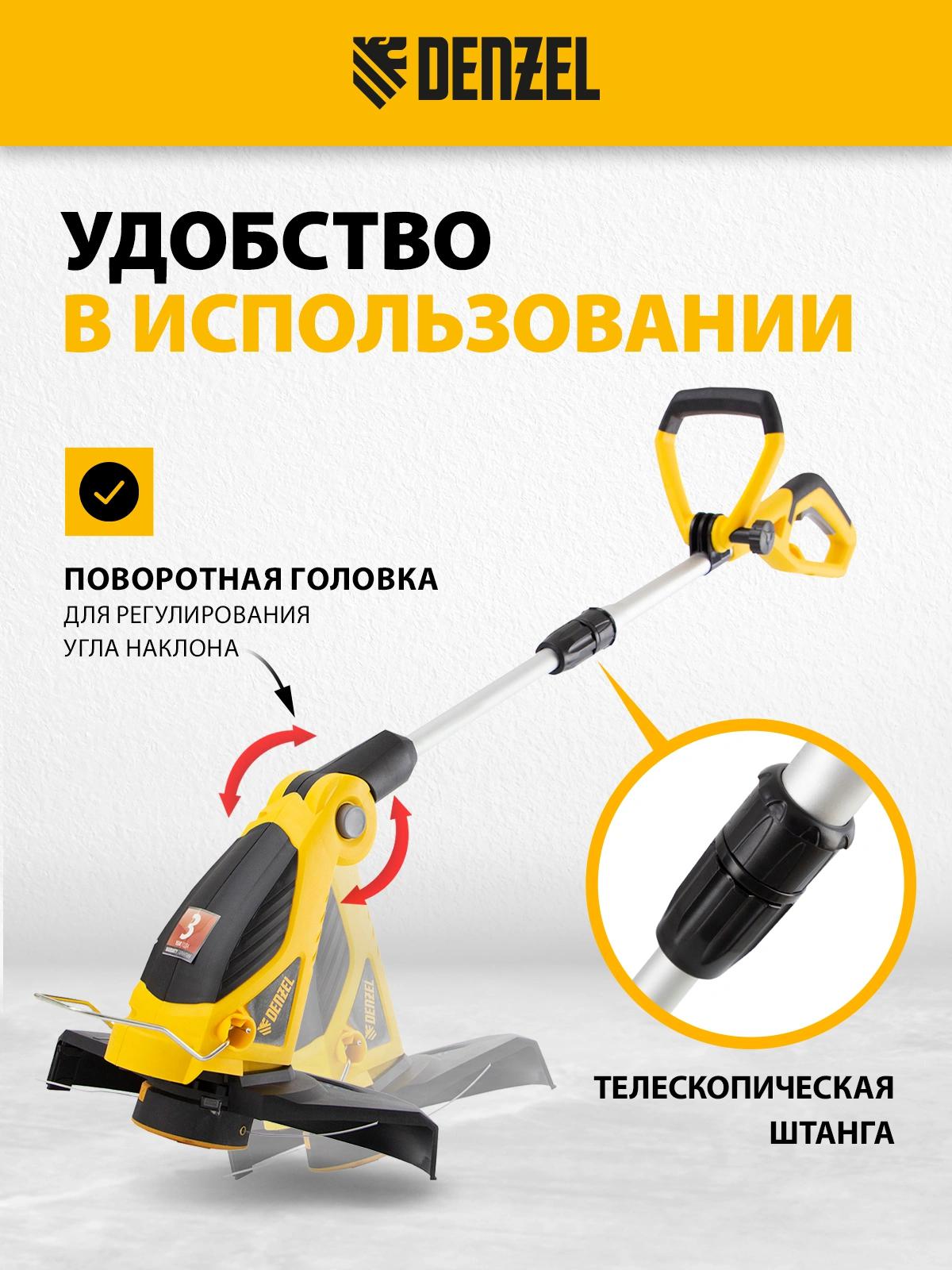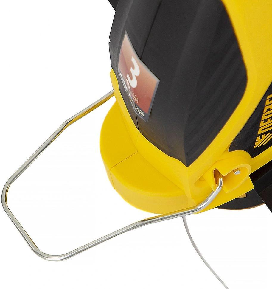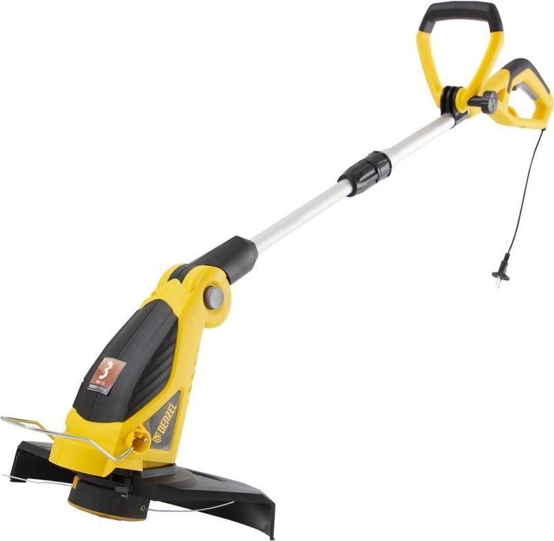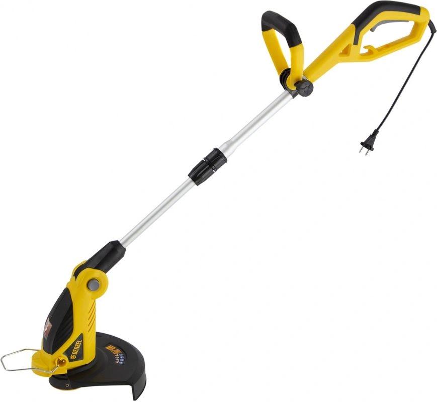 Триммер электрический, вспомогательная рукоятка, кожух защитный, направляющая триммера, комплект крепежа, руководство по эксплуатации с гарантийным талоном.