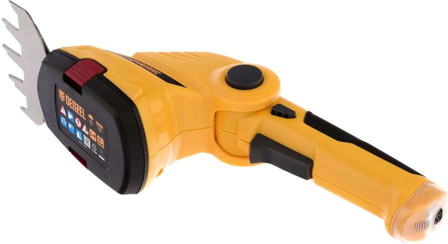 Ножницы-кусторез аккумуляторные, с обрезиненной рукояткой для комфортного хвата. Сменные лезвия дают возможность подрезать траву и ухаживать за кустарником.