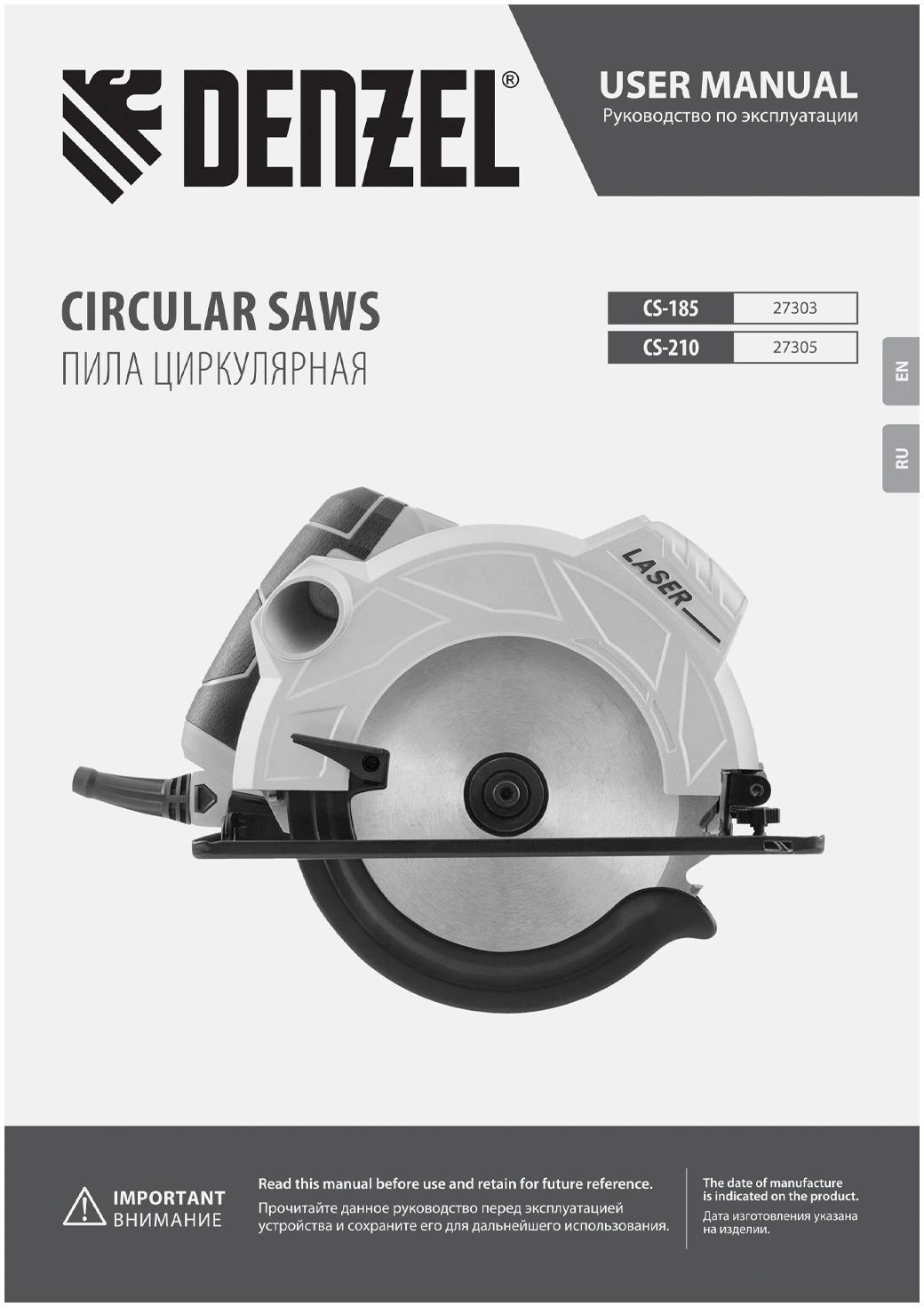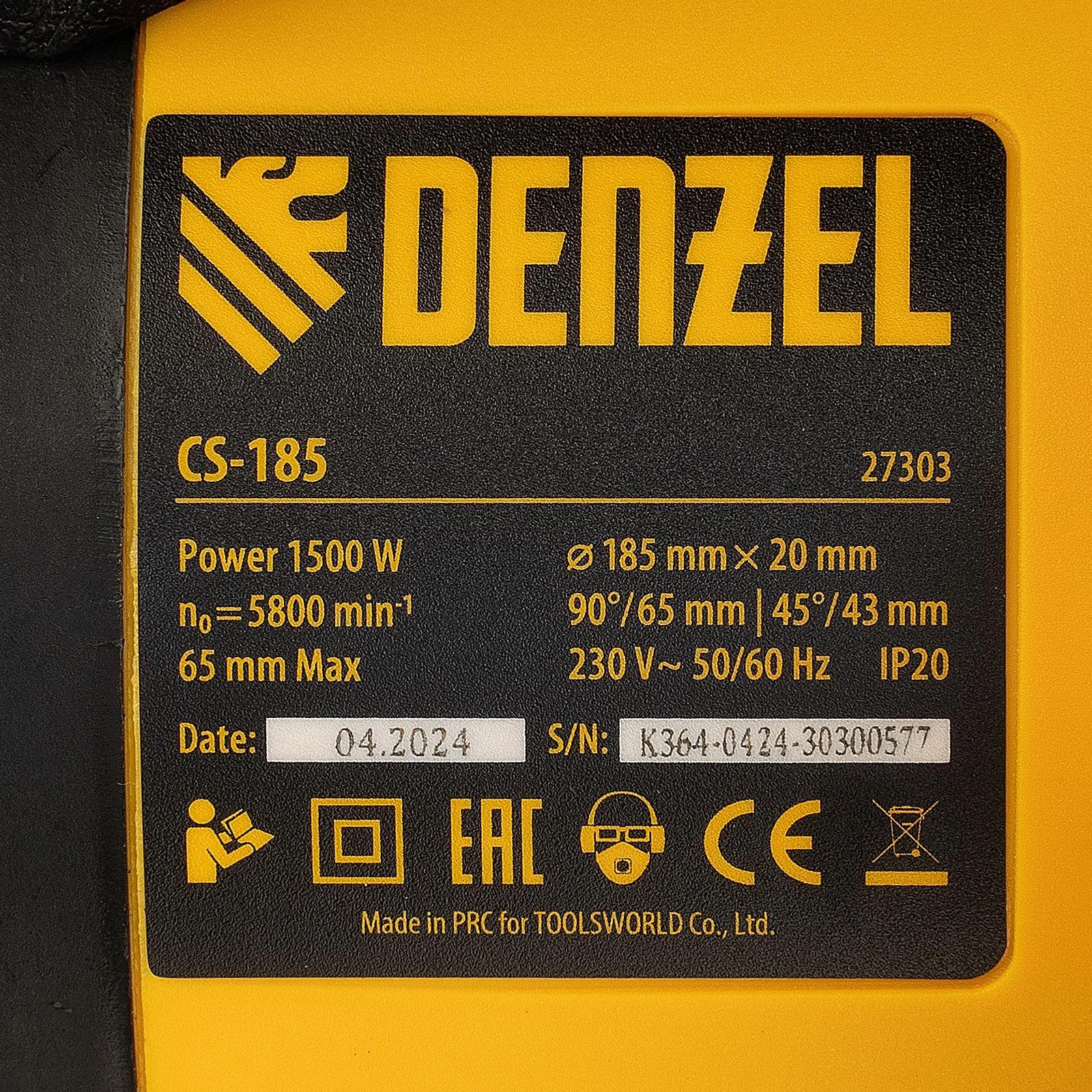 Циркулярная пила (дисковая) Denzel CS-185 1500Вт (ручная) D диска.:185мм (27303)