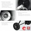 Емкость верхняя, емкость нижняя в сборе, венец, рама монтажная, основание переднее, основание заднее, колесо поворотное, колесо опорное - 2 шт., лопасть - 2 шт., привод в сборе, фиксатор, набор крепежа.