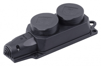 Блок силов. IEK Омега PKR62-016-2-K02 2розет. двойн. откр. зазем. крыш. IP44 черный (упак.:1шт)