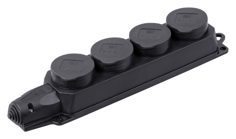 Блок силов. IEK Омега PKR64-016-2-K02 4розет. четверн. откр. зазем. крыш. IP44 черный (упак.:1шт)
