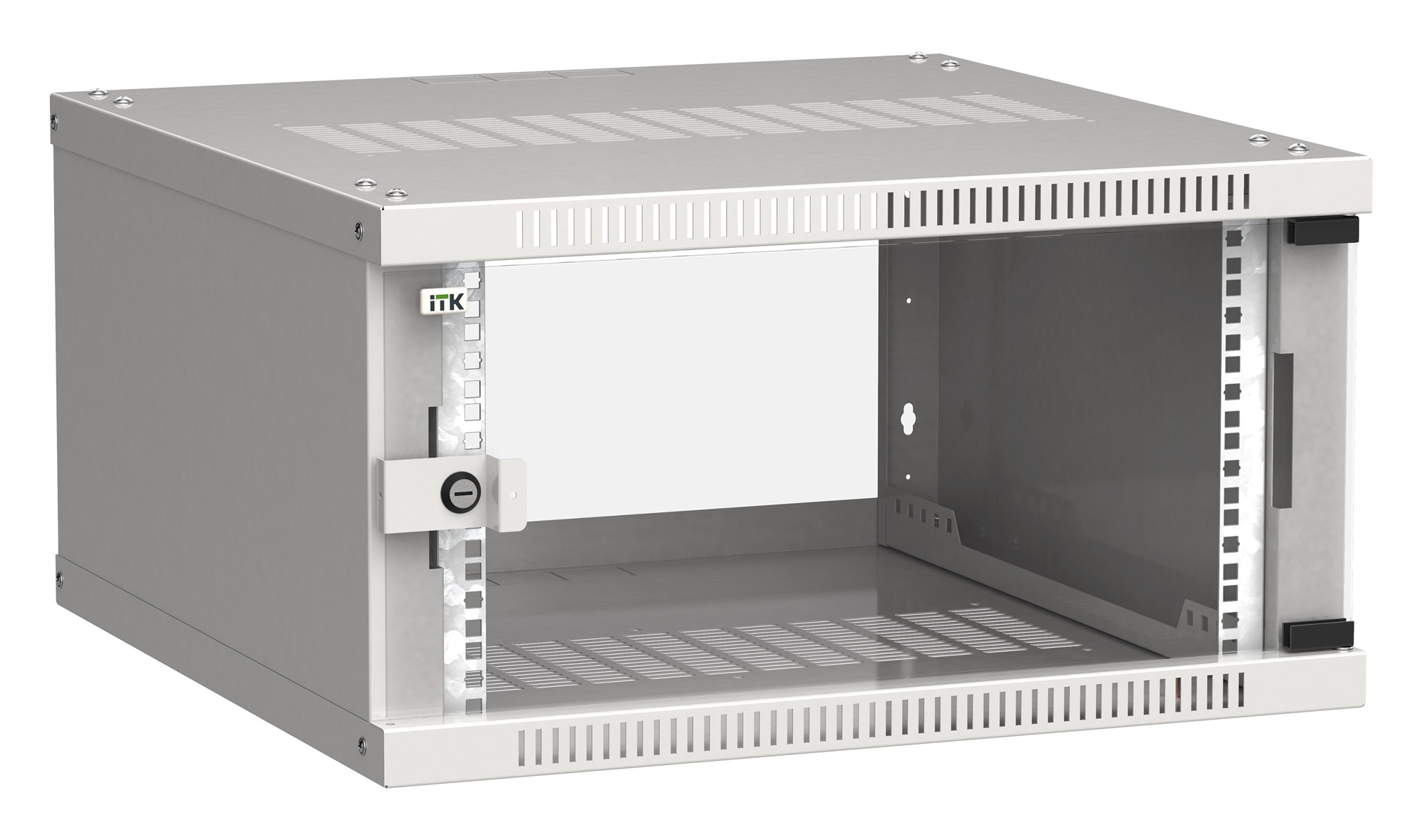Шкаф коммутационный ITK Linea WE (LWE3-06U66-GF) настенный 6U 600x600мм пер.дв.стекл направл.под закл.гайки 50кг серый 550мм 14.3кг 200град. 320мм IP20 IK08 сталь