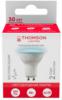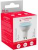 Светодиодная лампочка в форме полусферы с цоколем GU10 и размерами 60 мм по высоте и диаметром в 50 мм обладает мощностью в 4 W, благодаря чему она может осветить 2 кв. м. Цветовая температура – 6500 К, т.е. холодный свет синего оттенка