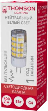 Лампа светодиодная Thomson TH-B4206 5Вт цок.:G4 капсул. 220B 4000K св.свеч.бел.нейт. (упак.:1шт)