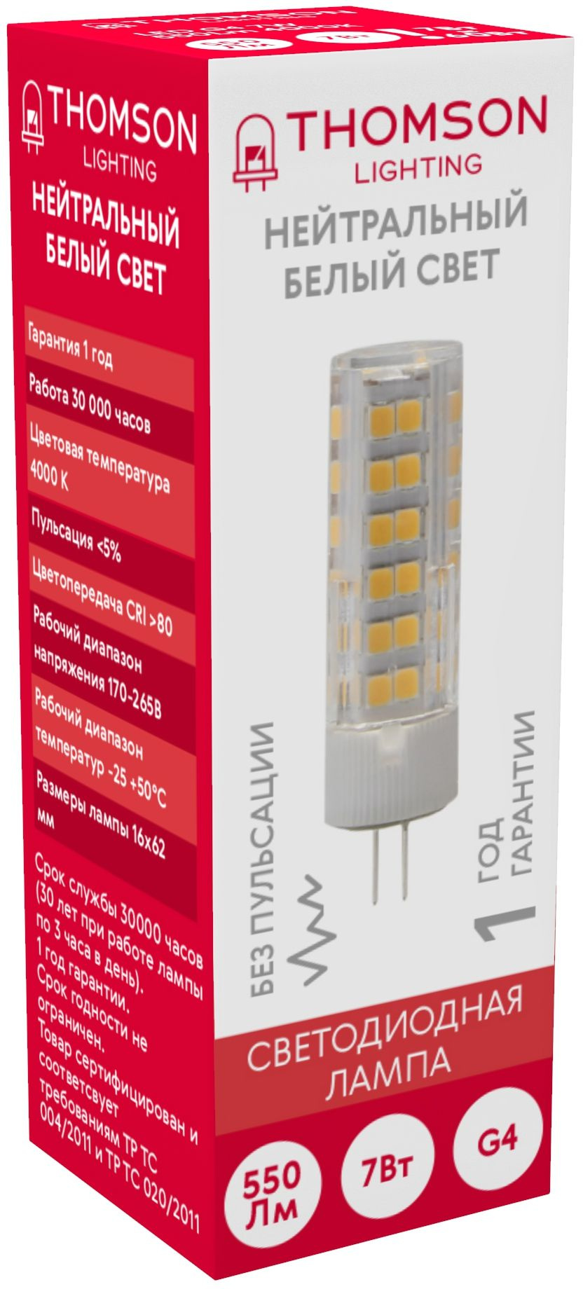 Лампа светодиодная Thomson TH-B4208 7Вт цок.:G4 капсул. 220B св.свеч.бел.нейт. (упак.:1шт)