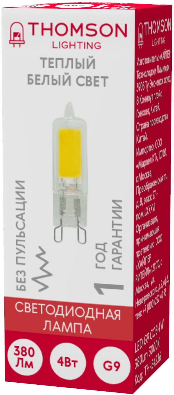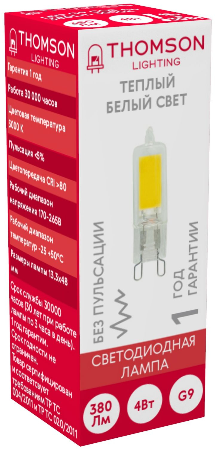 Лампа светодиодная Thomson TH-B4236 4Вт цок.:G9 капсул. 220B св.свеч.бел.теп. (упак.:1шт)