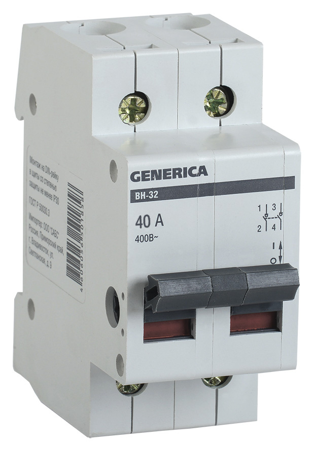 Выключатель IEK MNV15-2-040 Generica 40A 2П 400В 2мод белый (упак.:1шт)