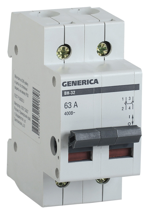 Выключатель IEK MNV15-2-063 Generica 63A 2П 400В 2мод белый (упак.:1шт)