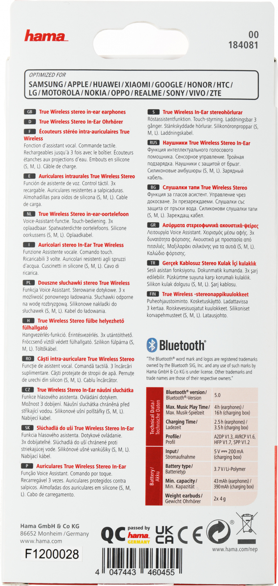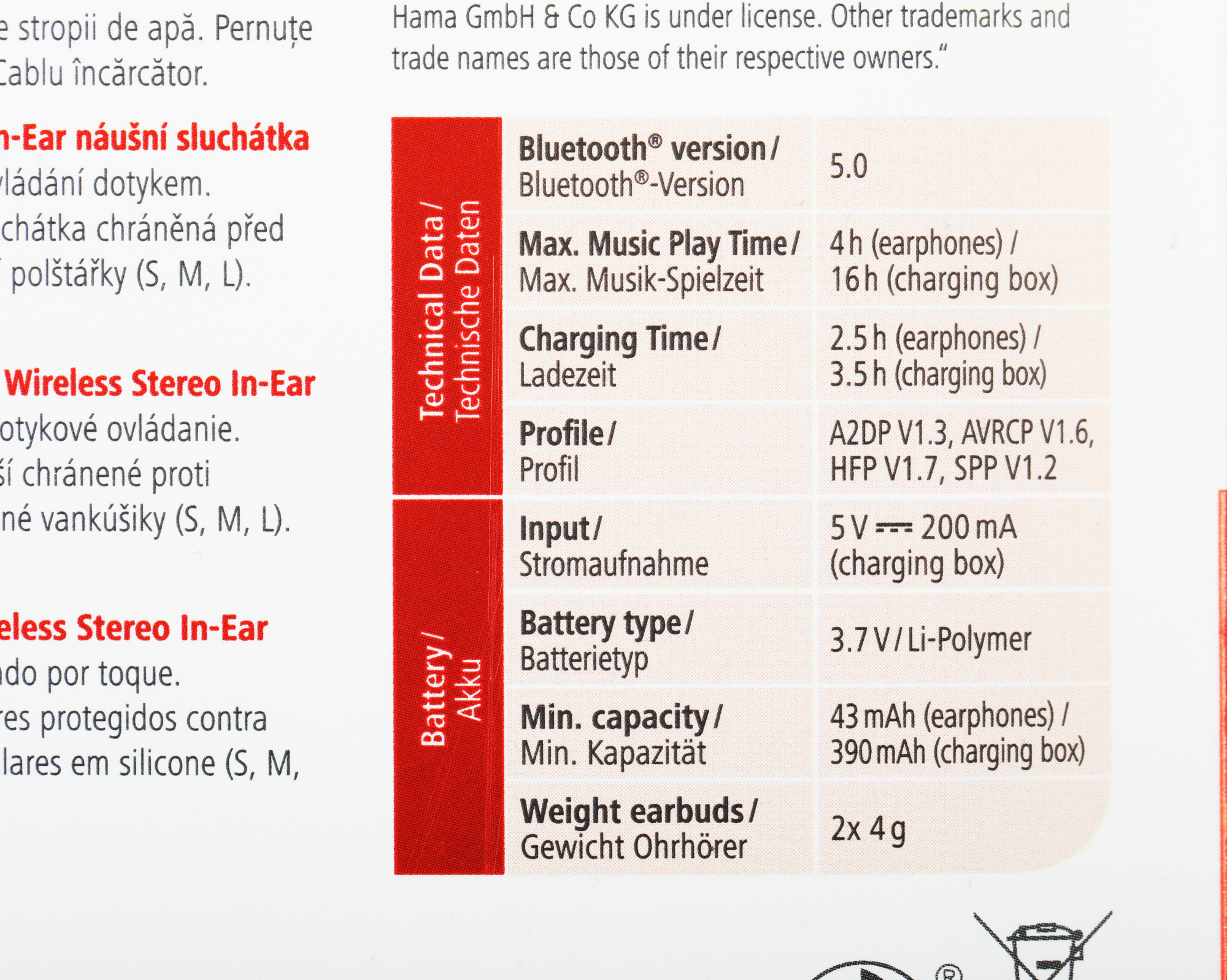 A2DP 1.3, AVRCP 1.6, HFP 1.7, HSP 1.2