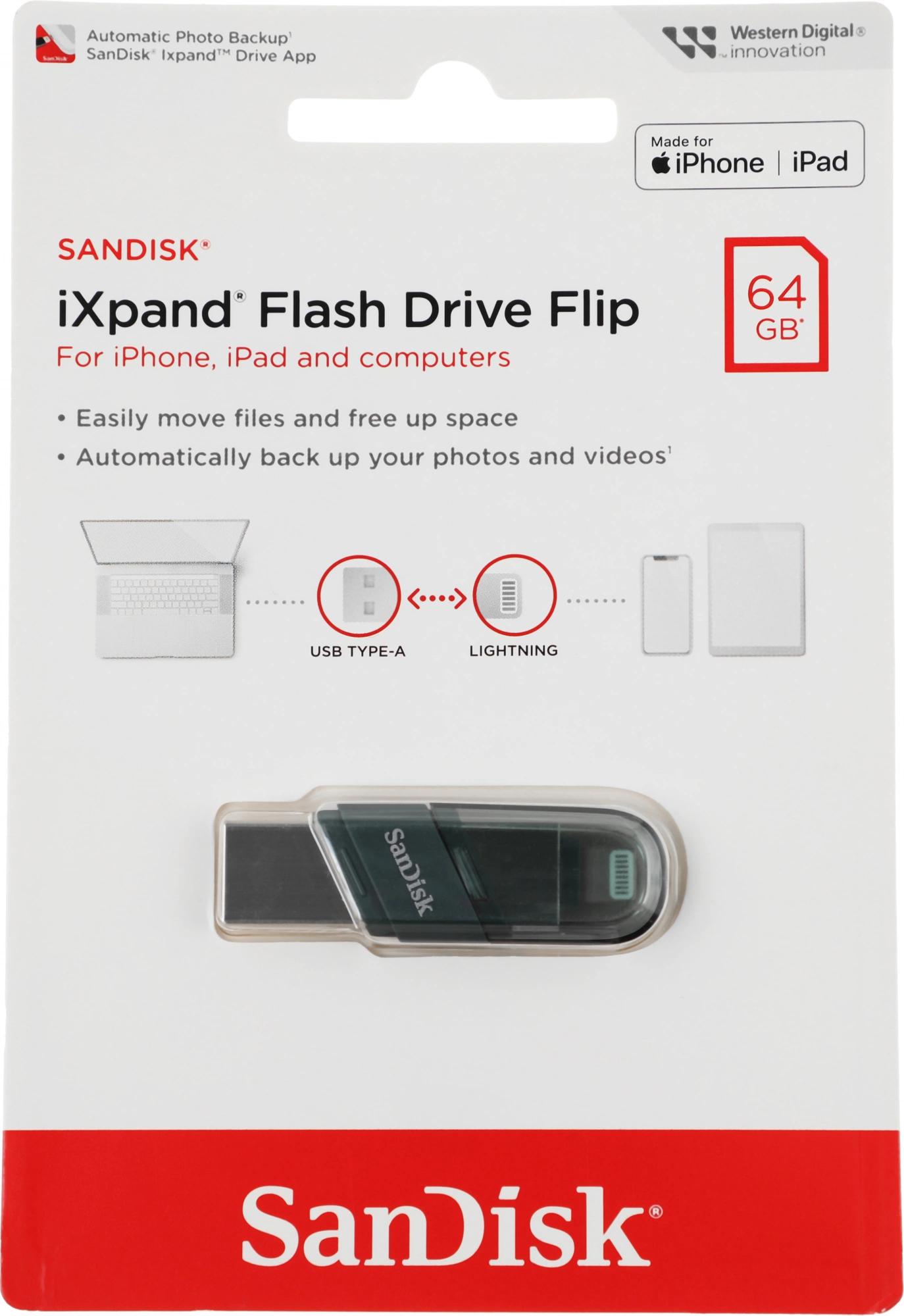 Флеш Диск Sandisk 64GB iXpand Flip SDIX90N-064G-GN6NN USB3.1 зеленый/серебристый