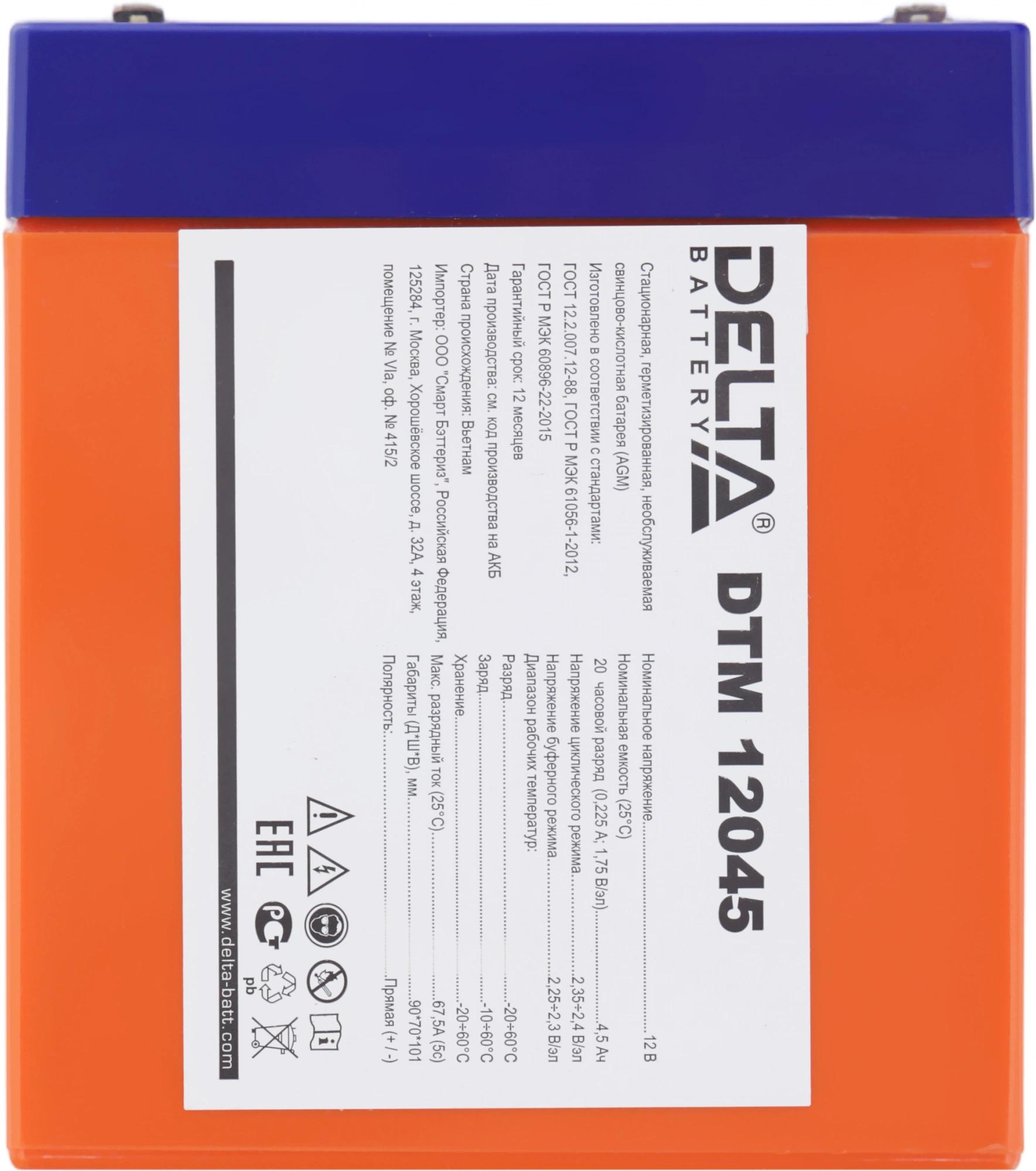 Батарея для ИБП Delta DTM 12045 12В 4.5Ач
