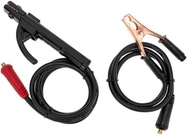 Инверторный сварочный аппарат, кабель длиной 1, 8 м. с электрододержателем, кабель длиной 1, 2 м. с зажимом массы, инструкция по эксплуатации.
