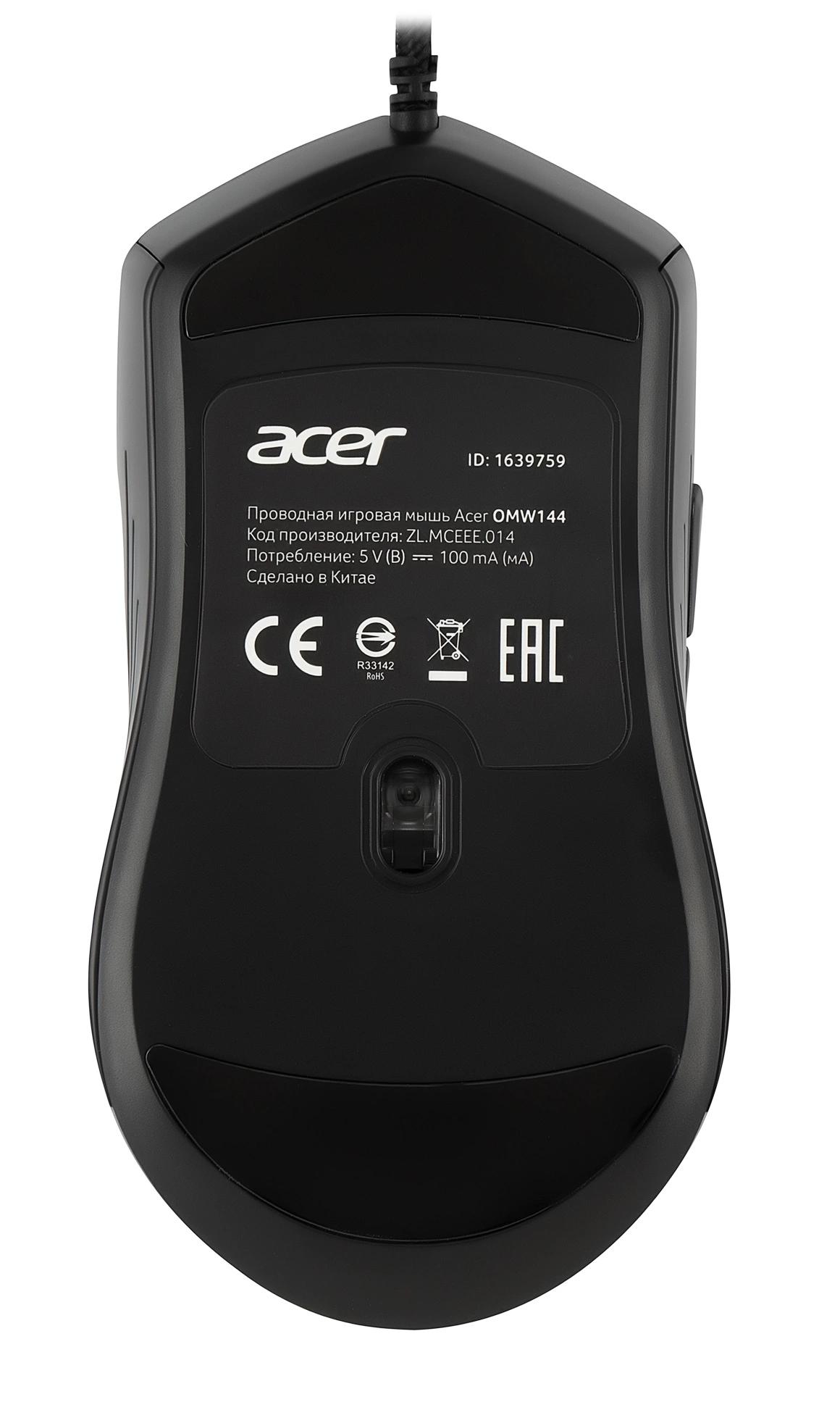 Мышь Acer OMW144 черный оптическая (3200dpi) USB (7but)