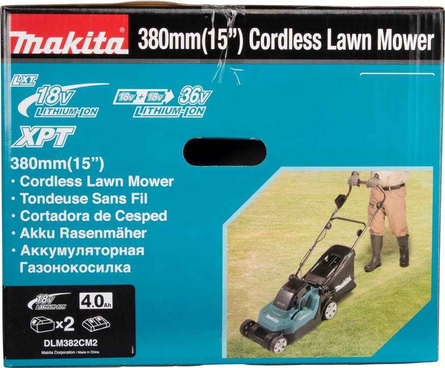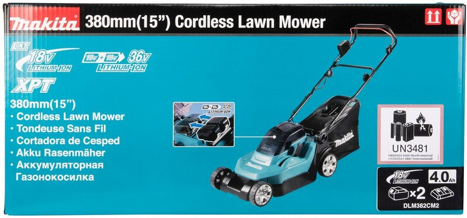Газонокосилка; нож; крепёж; травосборник; зарядное устройство (DC18SH); аккумулятор 4 Ач (2 шт.); упаковка.